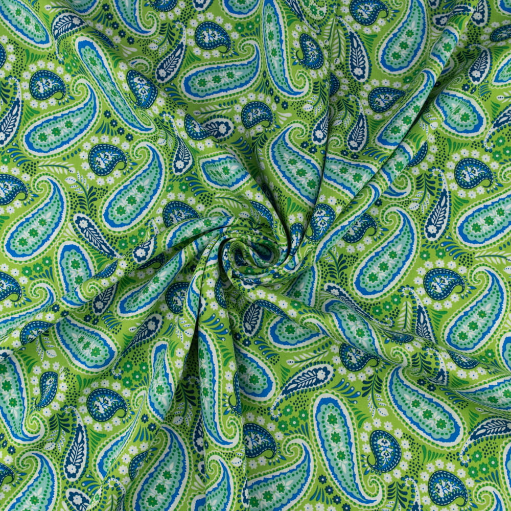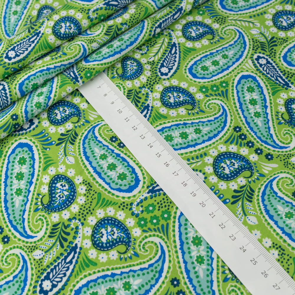 Tkanina Wiskoza – wzór paisley, kolor zielony