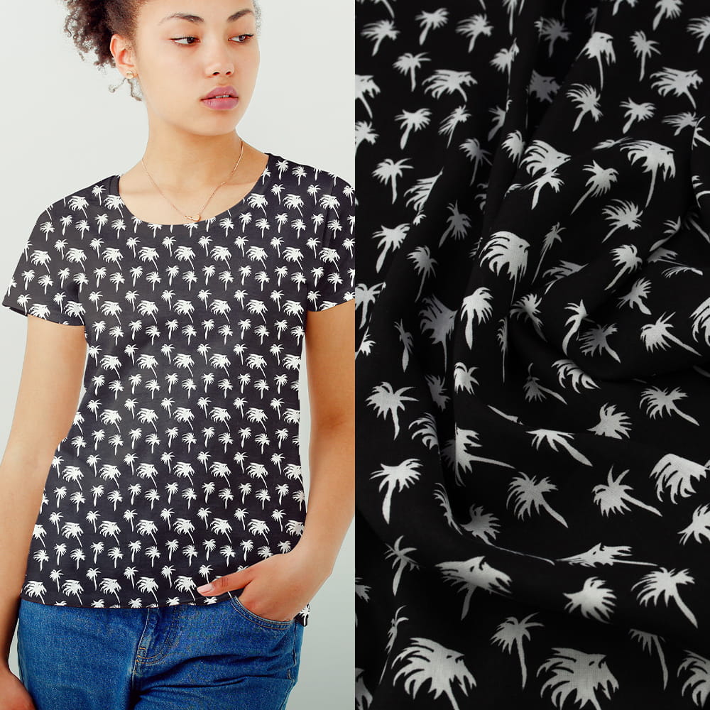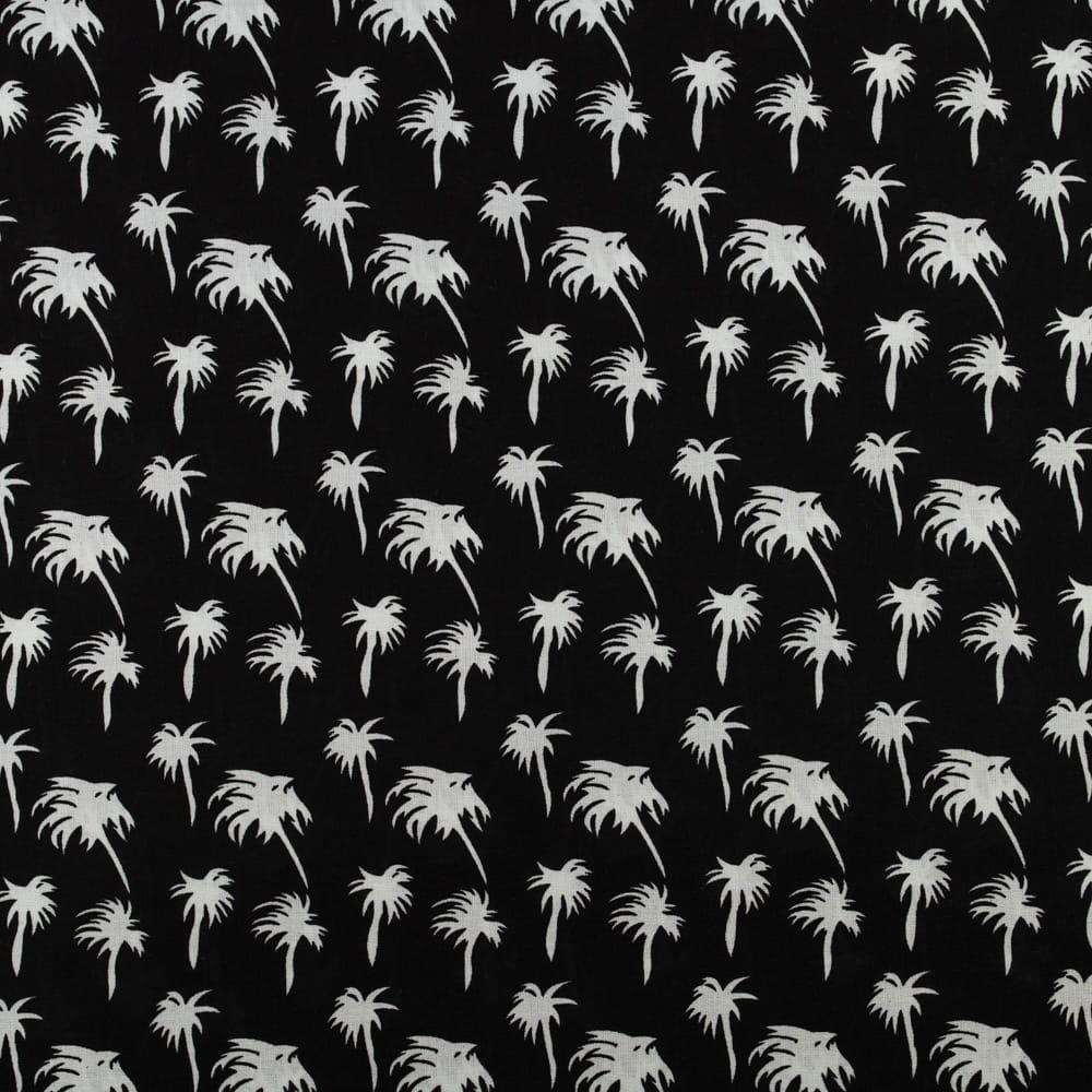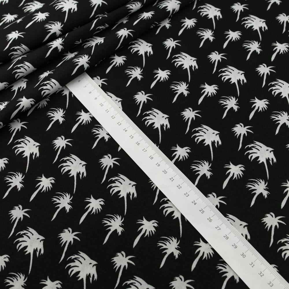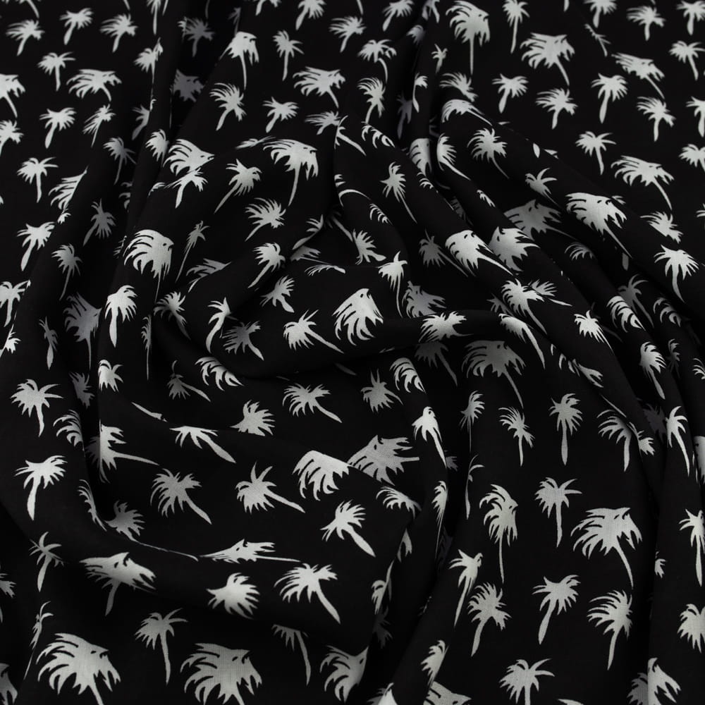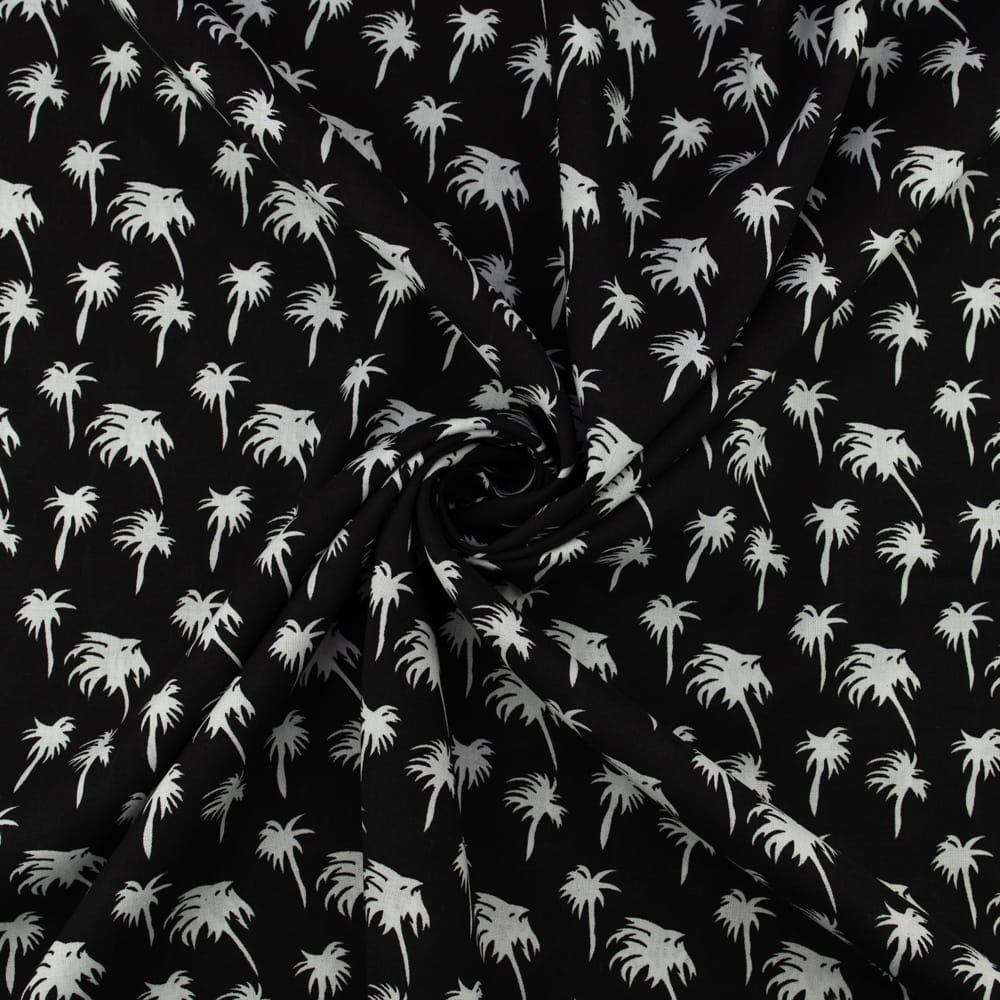 Tkanina Wiskoza – wzór palmy na czarnym tle