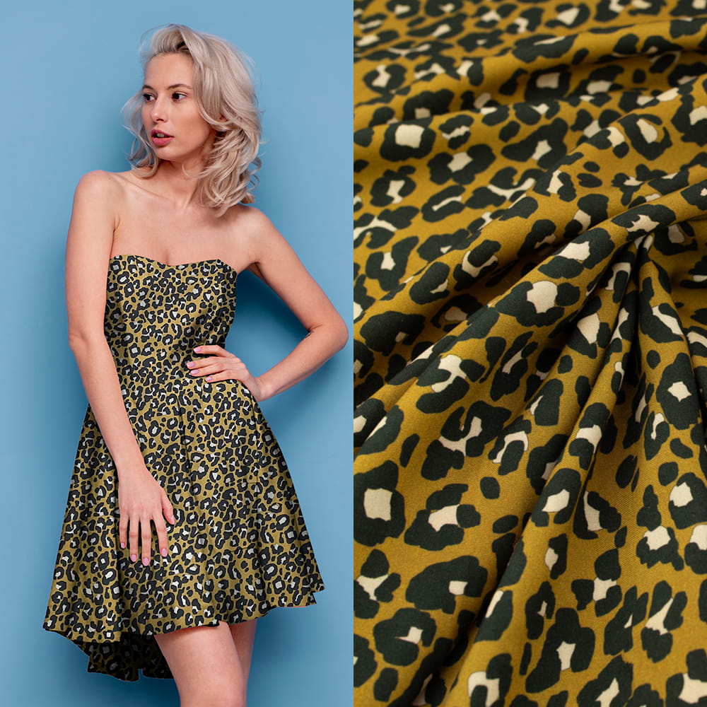 Tkanina Wiskoza – wzór panterka, kolor oliwkowy