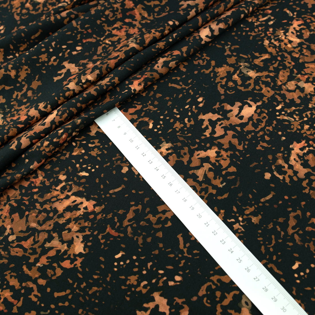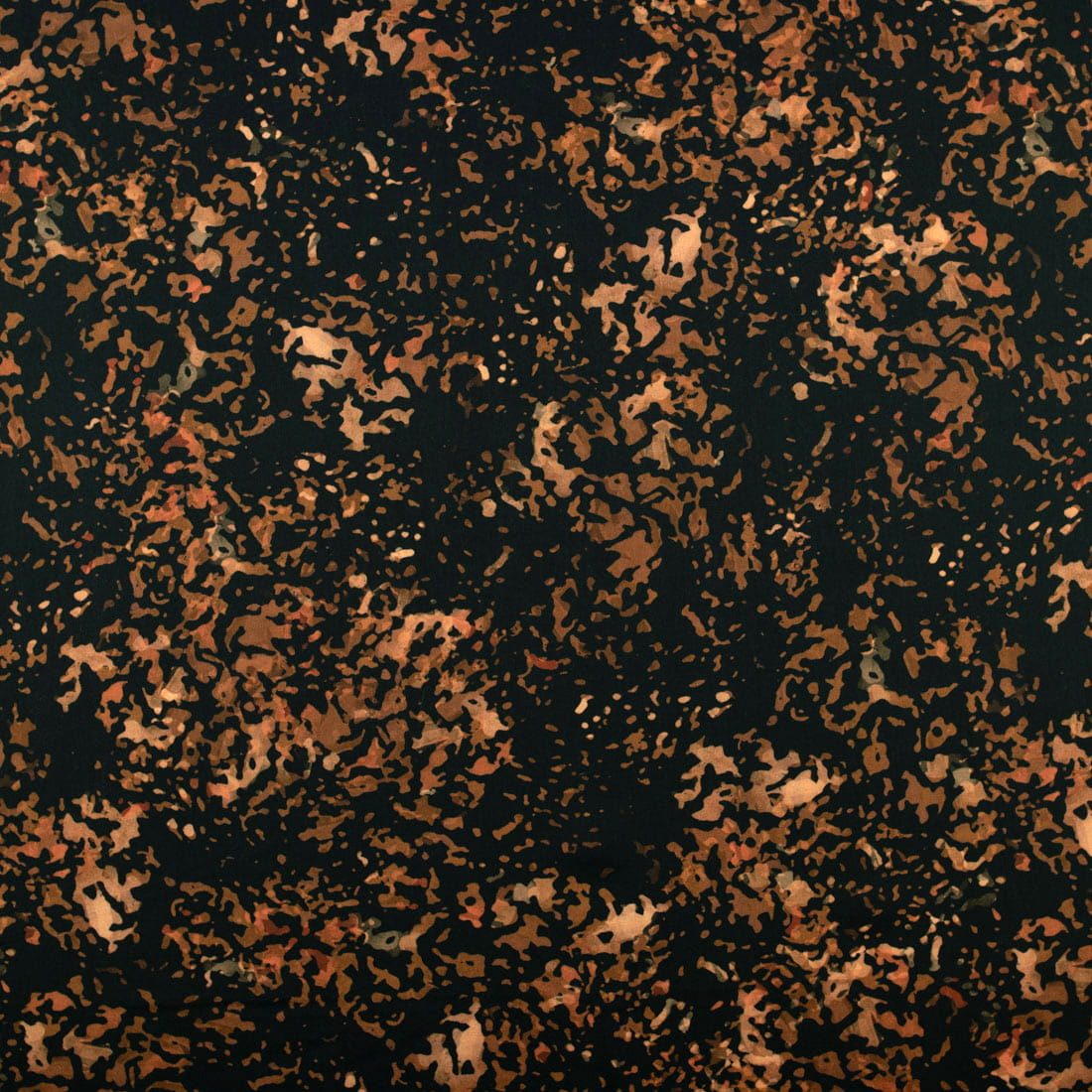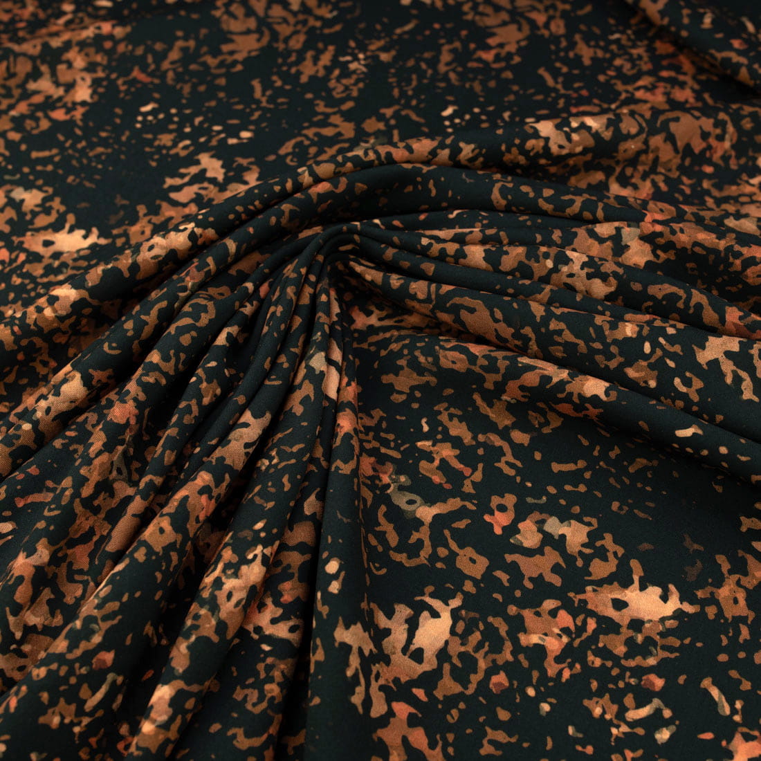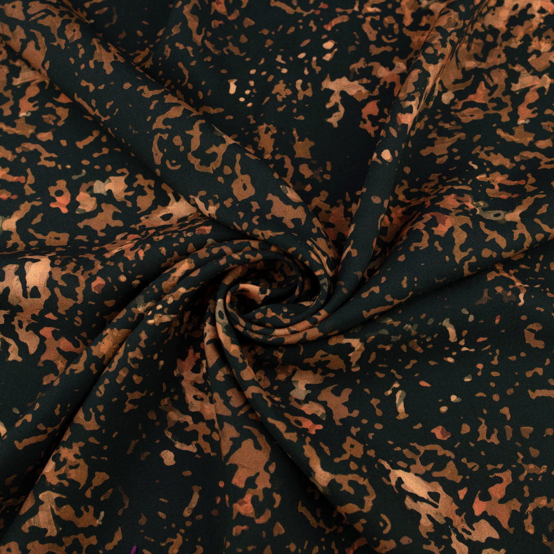Nowoczesna i stylowa tkanina wiskozowa z abstrakcyjnym wzorem plamek w czarno-brązowej kolorystyce. Miękka, lekka i przewiewna – doskonale sprawdzi się na zwiewne i wygodne kreacje. Dzięki swojej delikatnej strukturze tkanina pięknie układa się na sylwetce, zapewniając komfort noszenia zarówno na co dzień, jak i na wyjątkowe okazje.