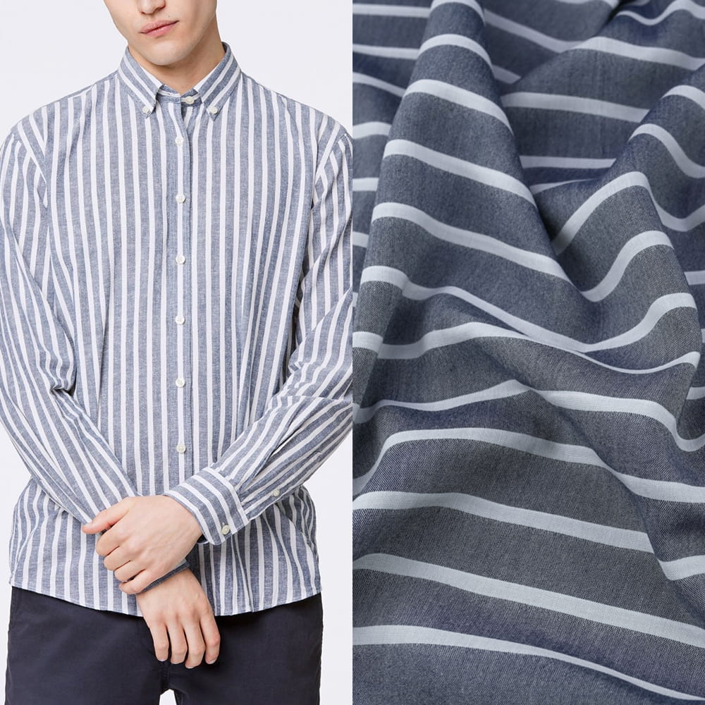 Dodaj klasyczną elegancję do swojej garderoby z granatową wiskozą w pasy – zamów już dziś!