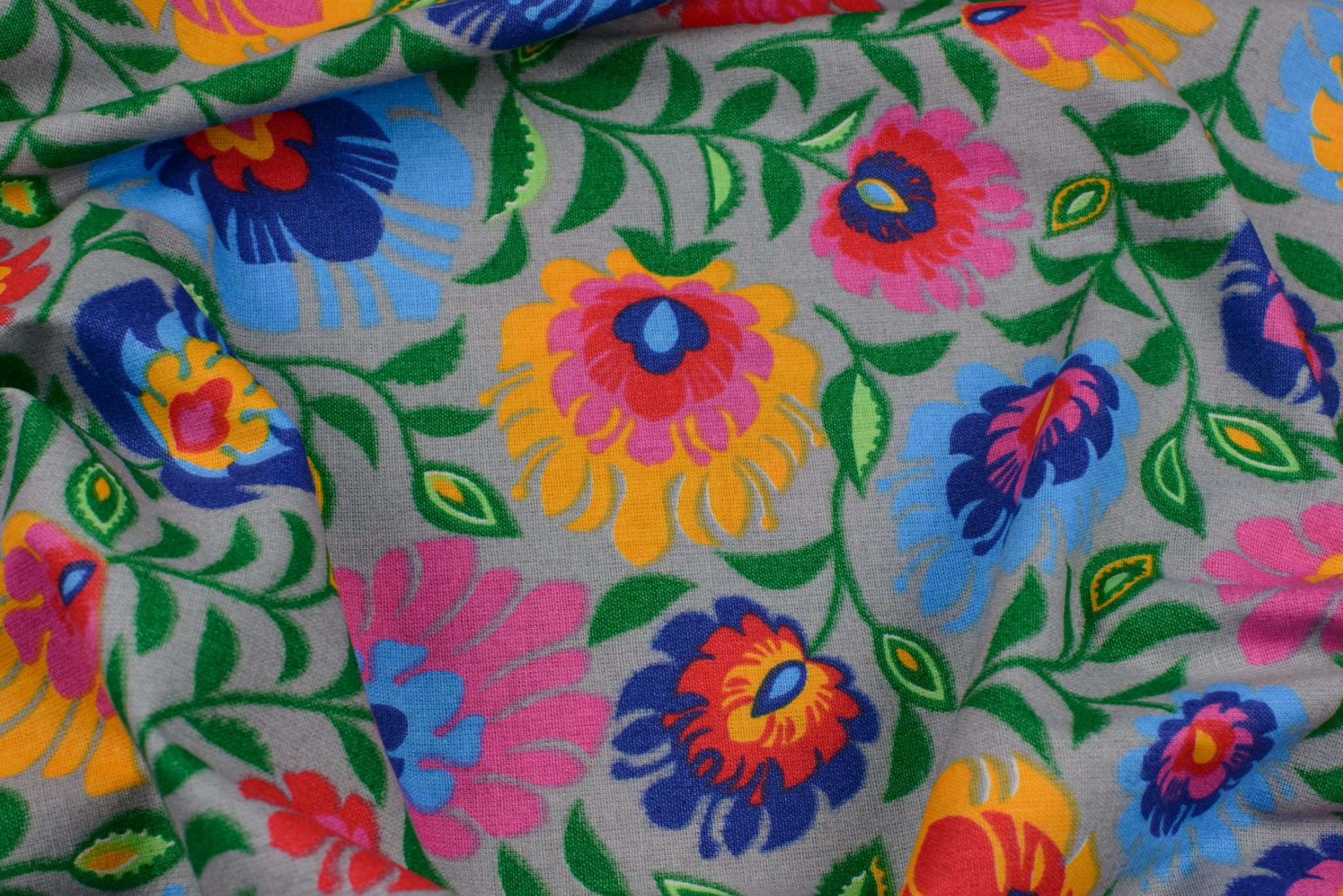 Tkanina bawełna wzór ludowy szary
