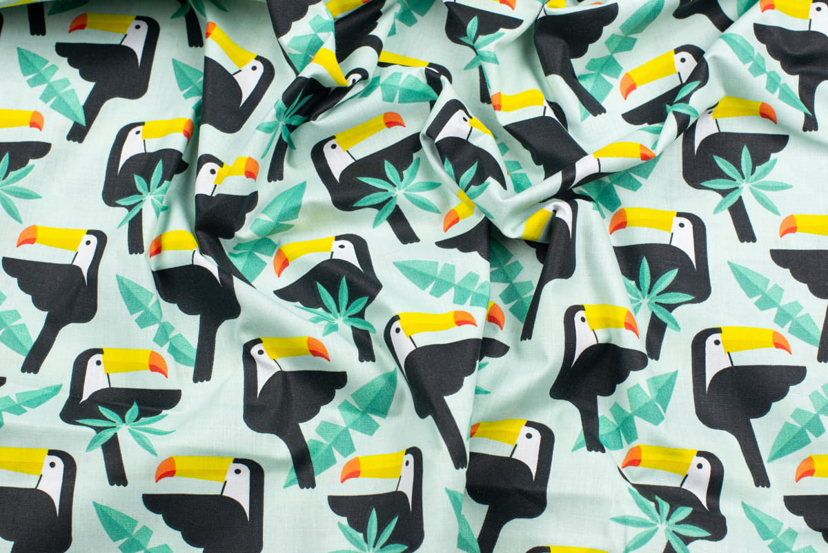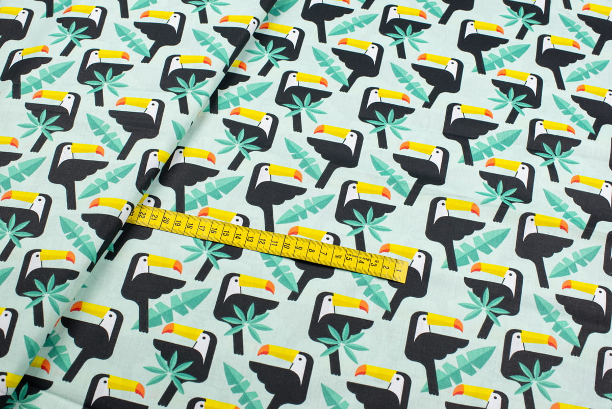 Tkanina bawełna wzór ptak pelikan kolor biały