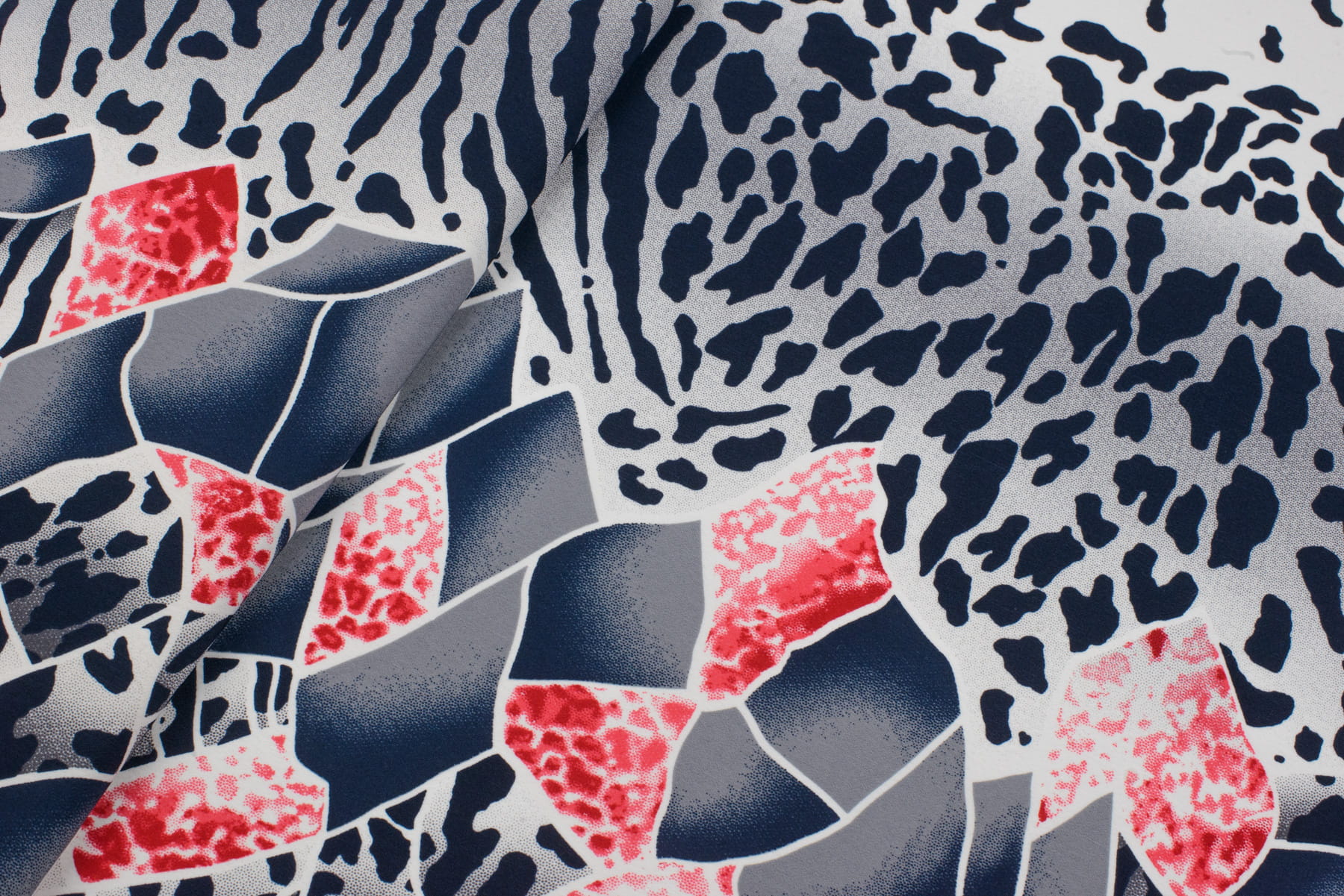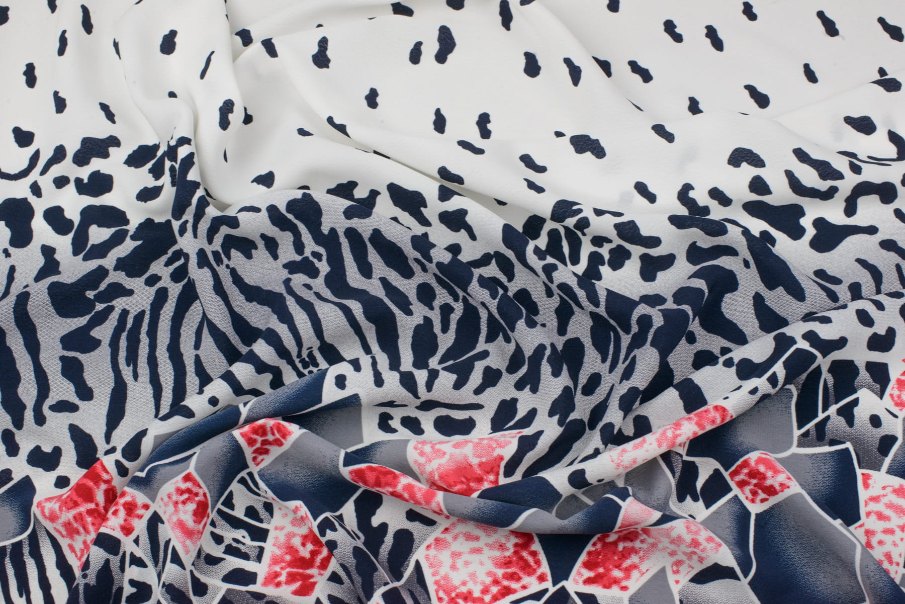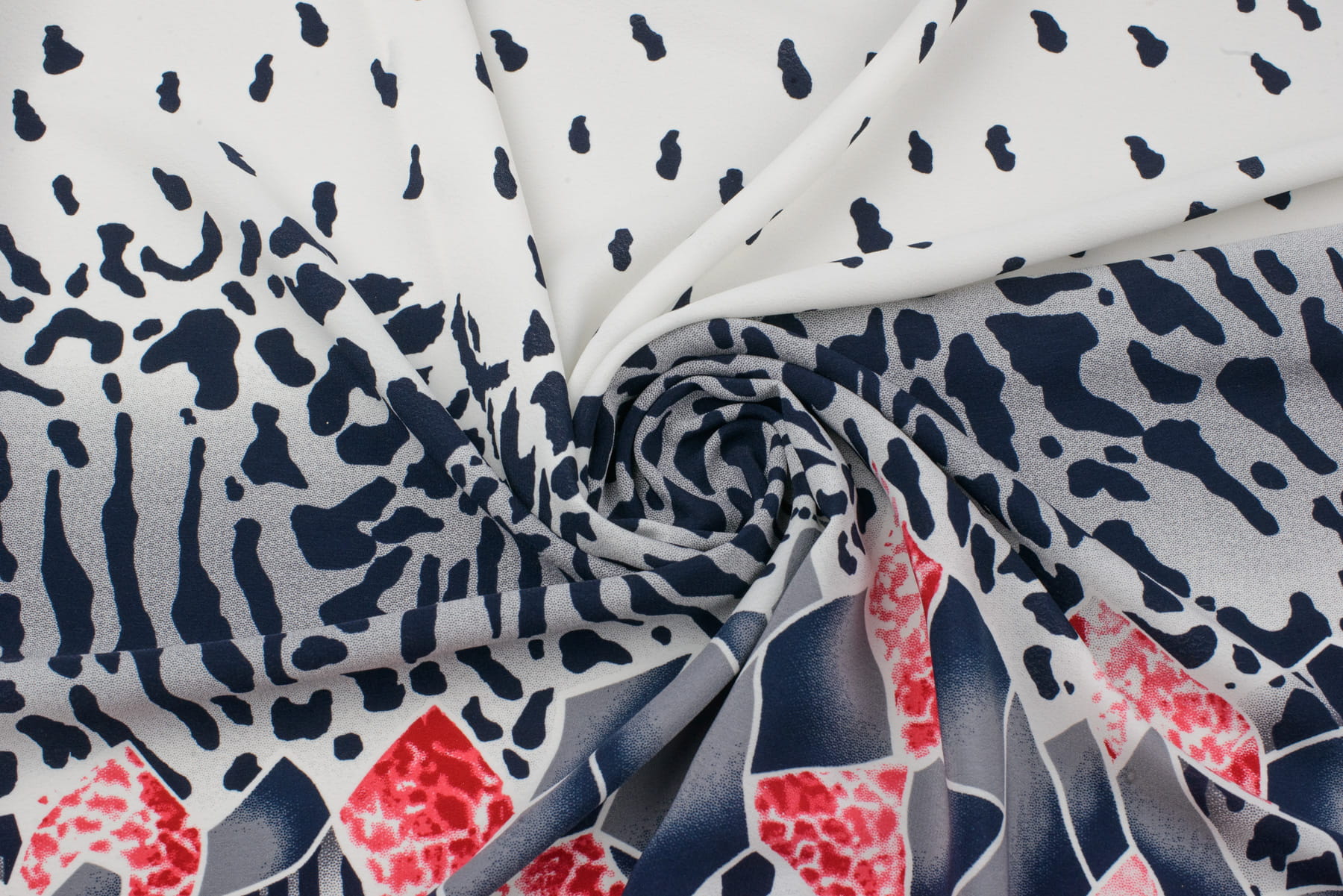 Tkanina kelly krepa wzór panterka border granatowy / kremowy