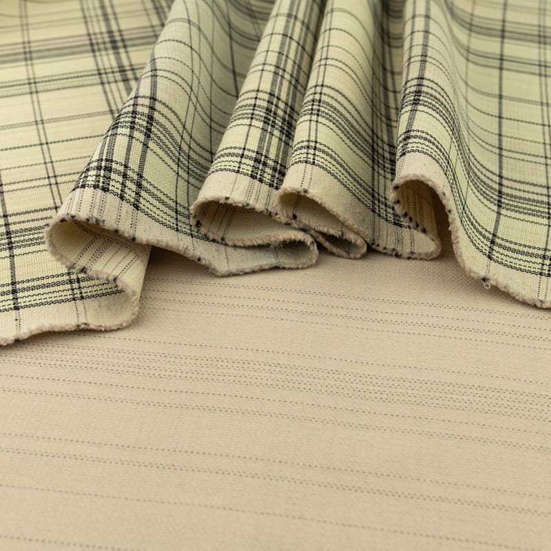 Materiał cechuje, zwarty, mocny splot, dzięki czemu jest niezwykle trwały oraz odporny na zgniecenia. Tkanina to doskonały wybór dla konfekcji męskiej oraz damskiej. Świetnie sprawdzi się na eleganckie garnitury, marynarki, garsonki, szaliki, ponczo, narzuty czy kamizelki.