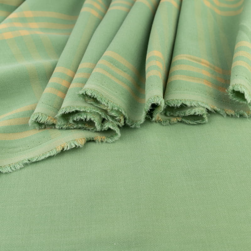 Materiał cechuje, zwarty, mocny splot, dzięki czemu jest niezwykle trwały oraz odporny na zgniecenia. Tkanina to doskonały wybór dla konfekcji męskiej oraz damskiej. Świetnie sprawdzi się na eleganckie garnitury, marynarki, garsonki, szaliki, ponczo, narzuty czy kamizelki.