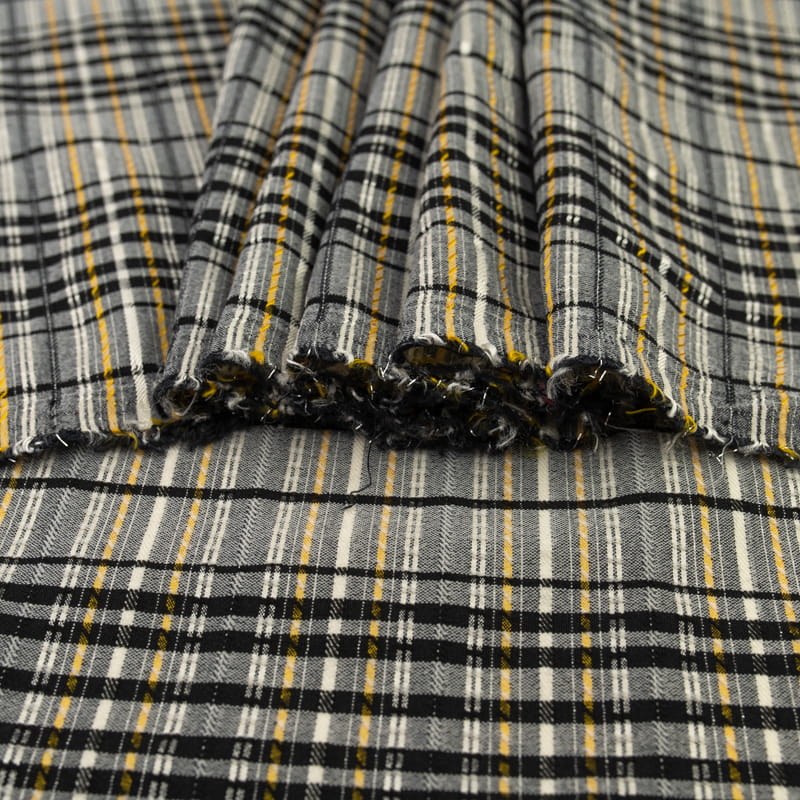 Tkanina krata złota nitka kolor szary