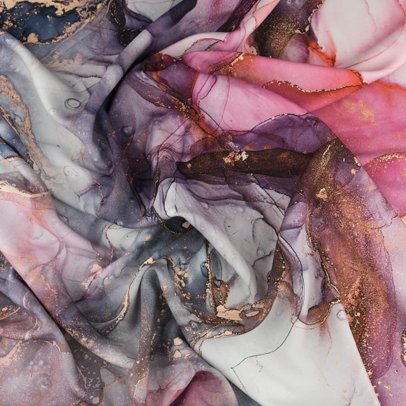 Tkanina krepa wzór akwarelowa abstrakcja kolor różowy