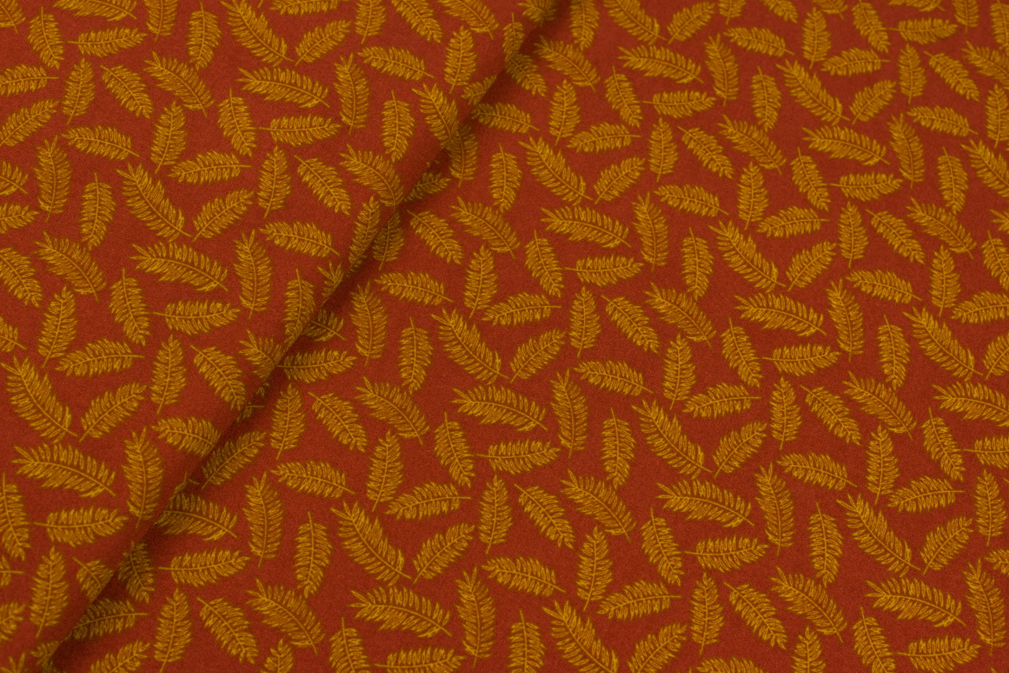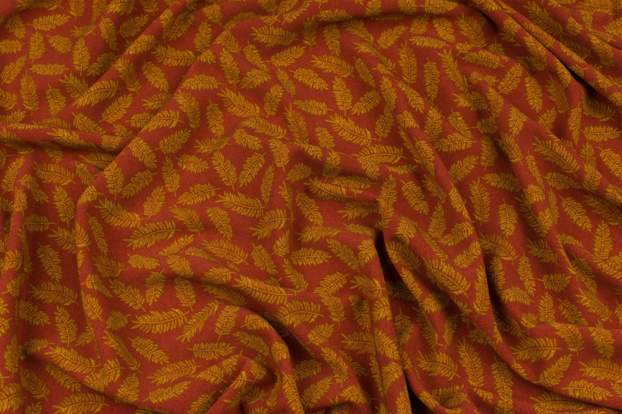 Tkanina milano krepa wzór liście paproci kolor rudu