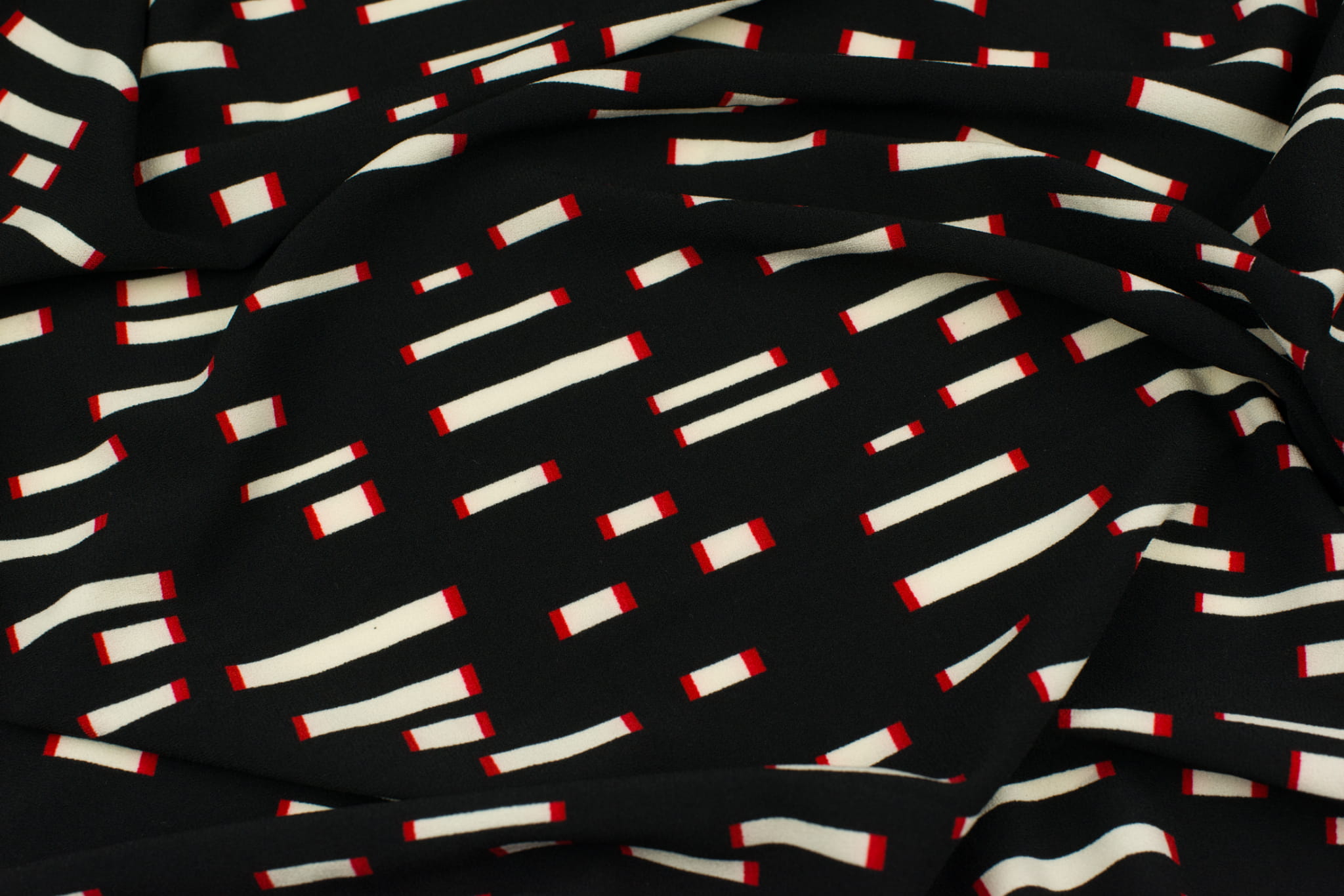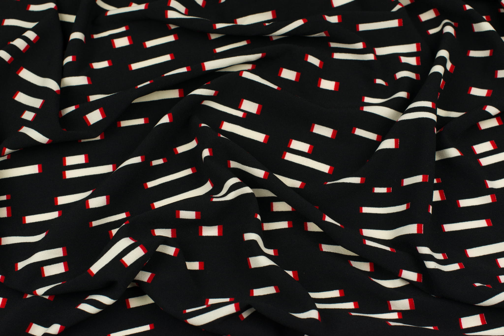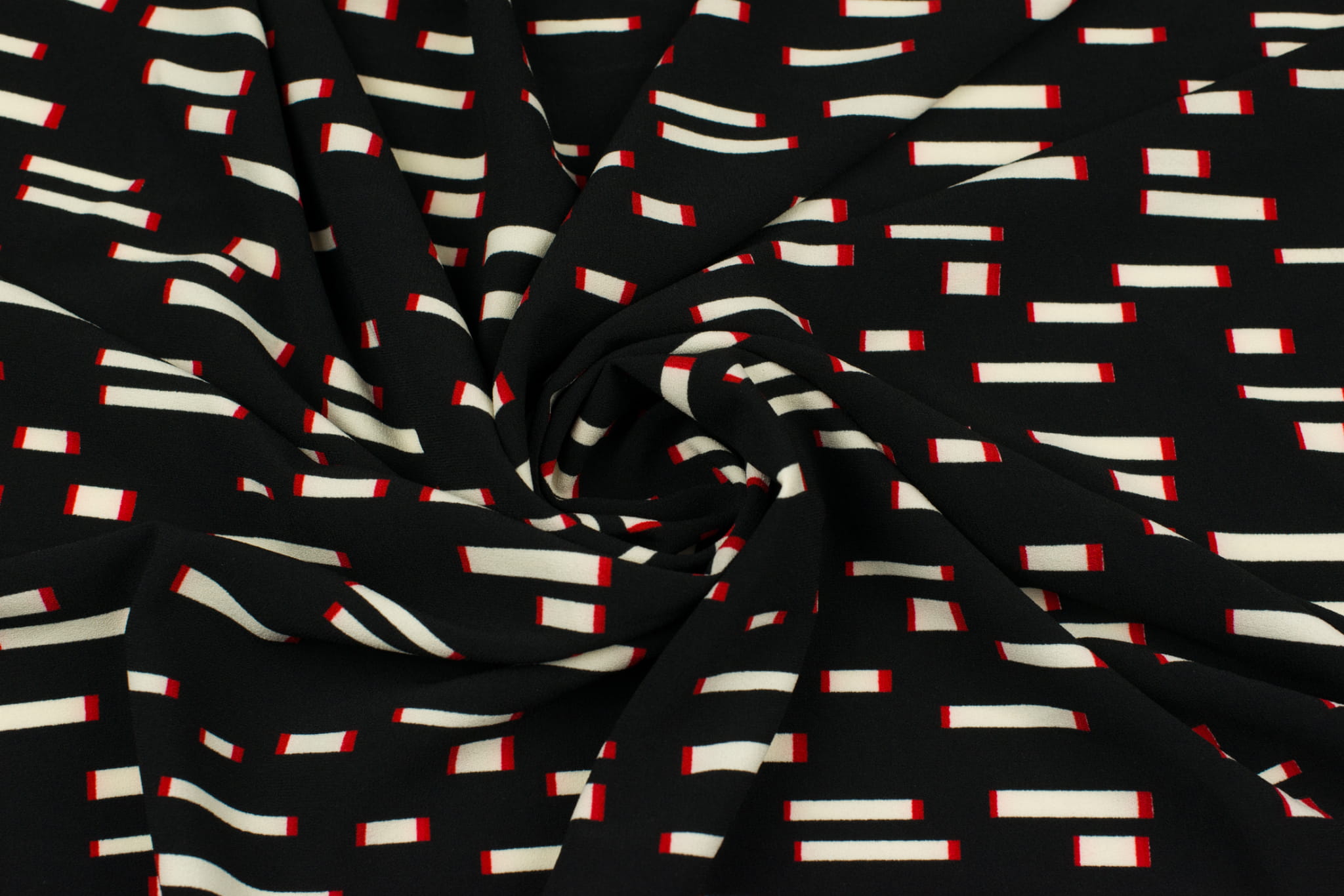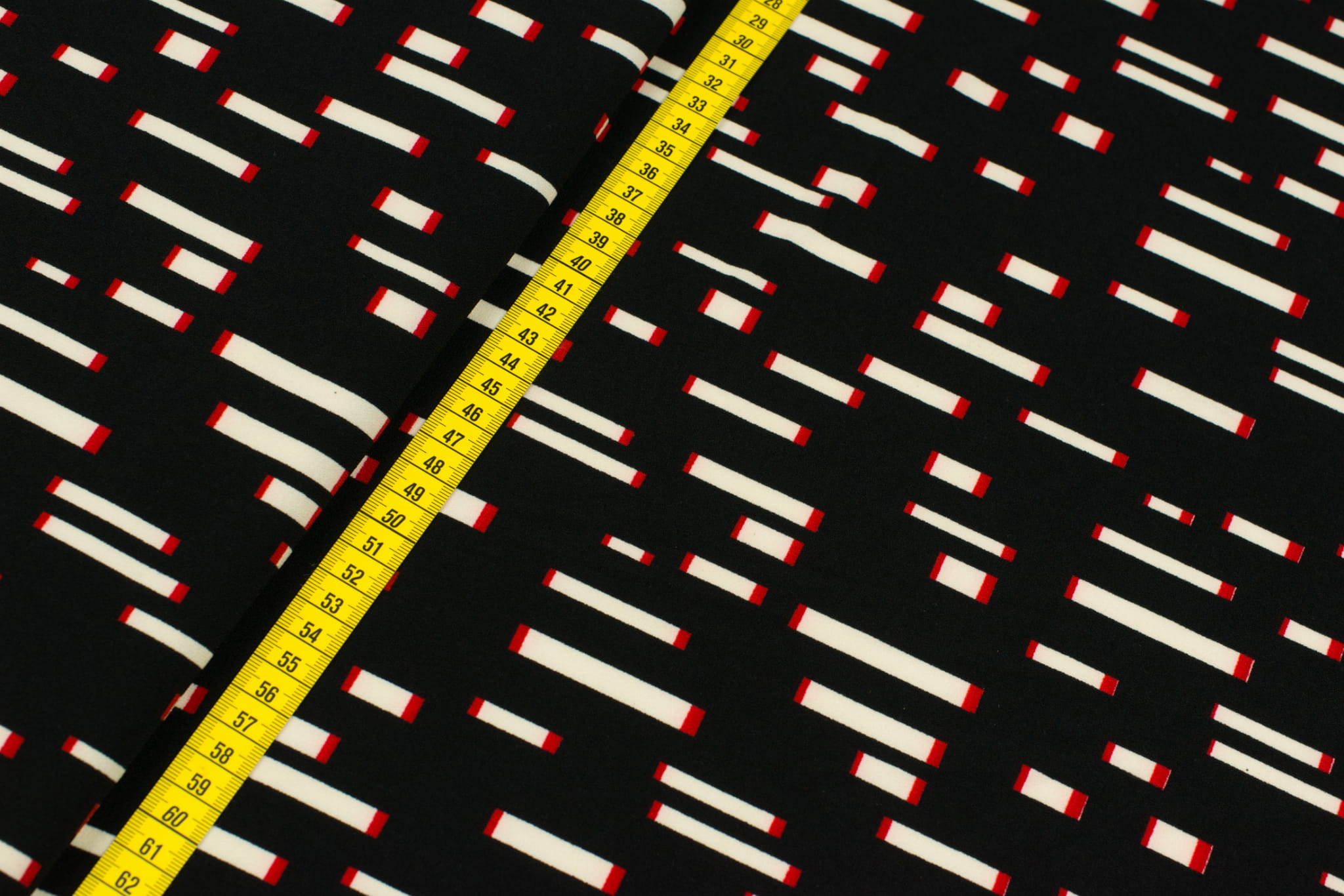 Tkanina milano krepa wzór prostokąty na czarnym tle