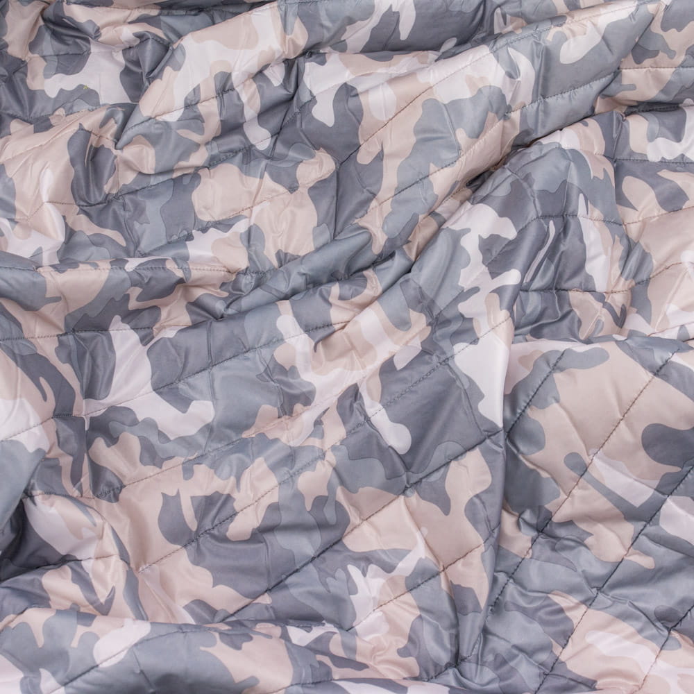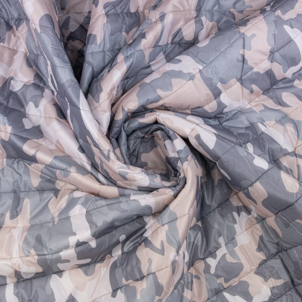 Tkanina pikowaną z ociepliną wzór Moro kolor szary i beżowy