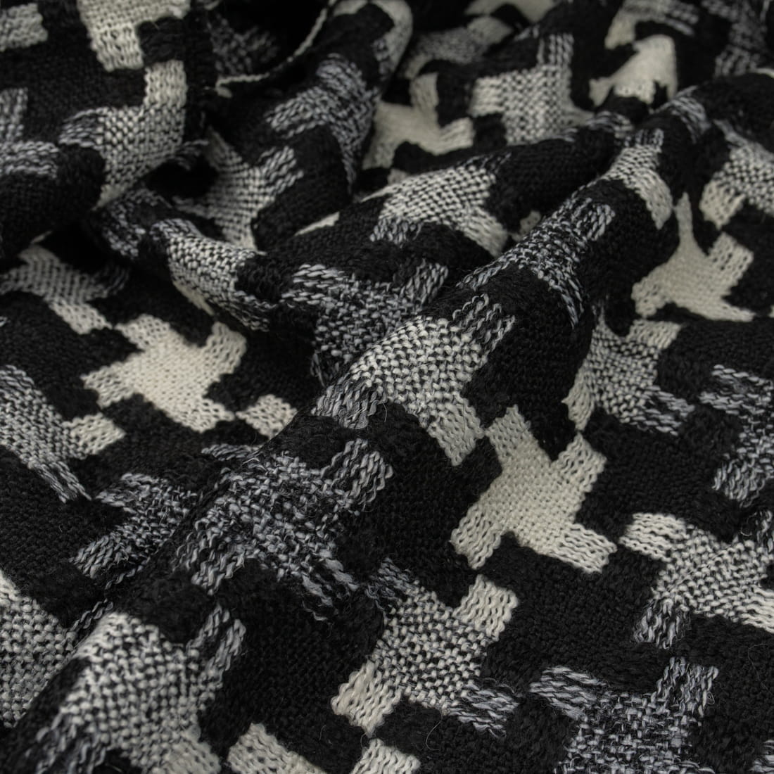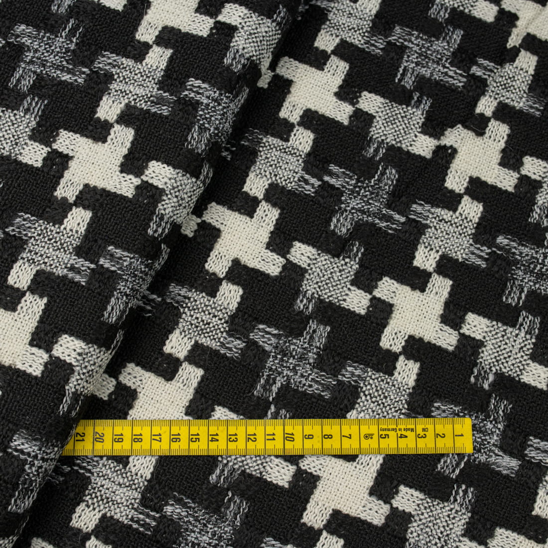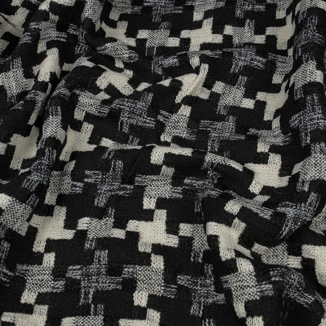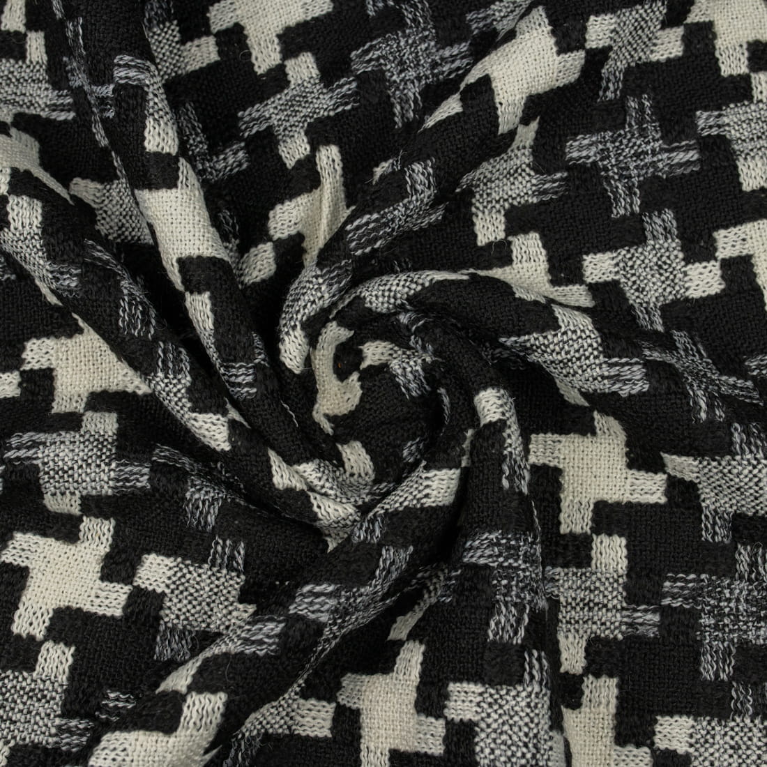 Tkanina płaszczowa wzór geometryczny czarny i kremowy