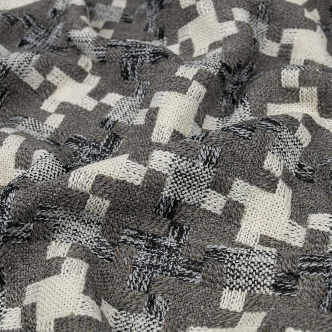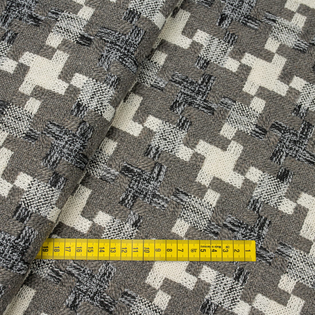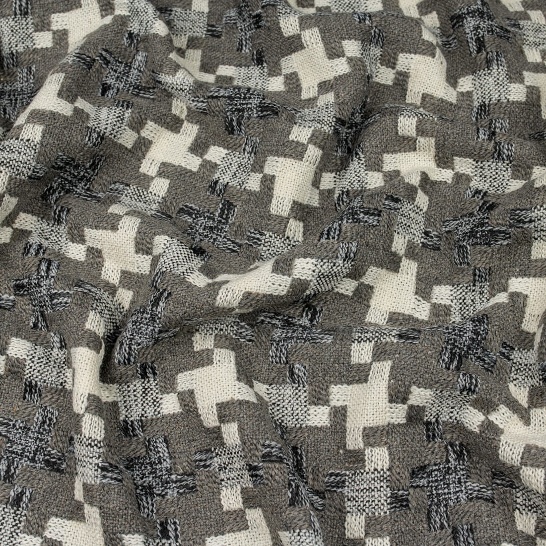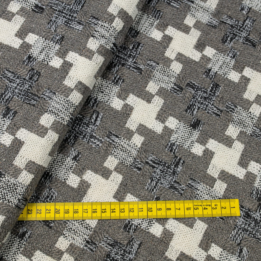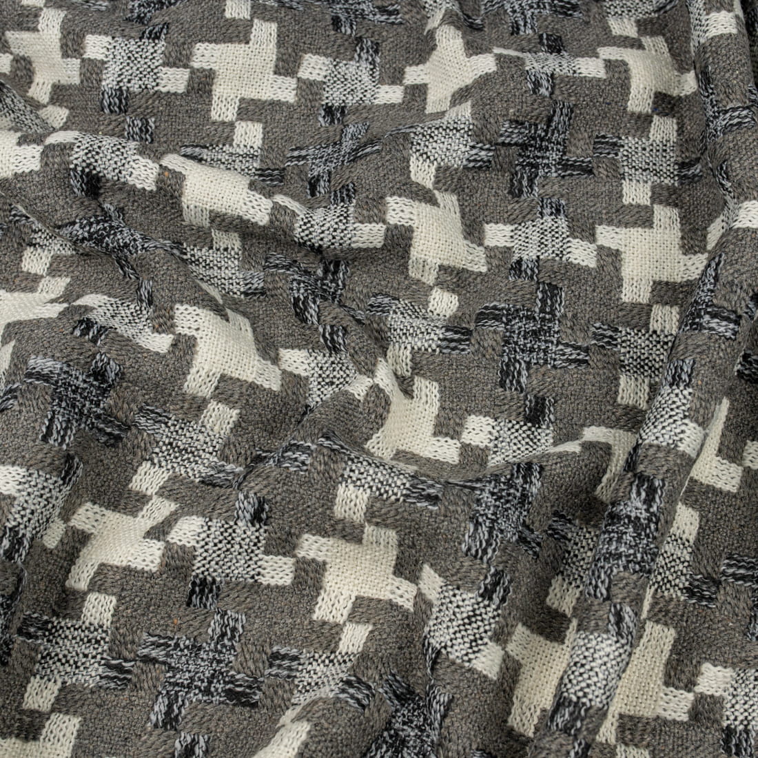 Tkanina płaszczowa wzór geometryczny kolor szary i kremowy