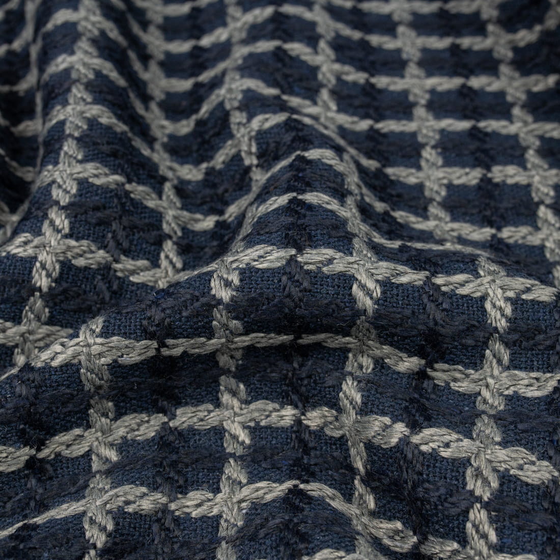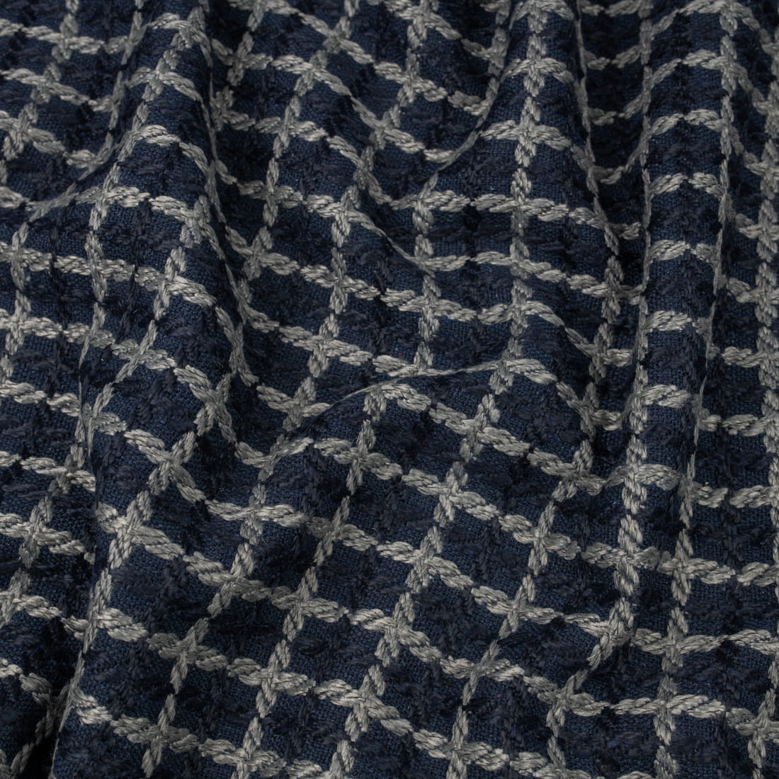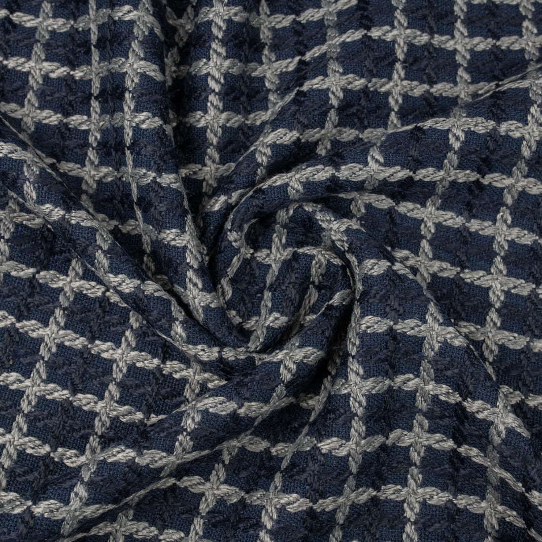 Tkanina płaszczowa wzór krata odcieniach szarości na granatowym tle