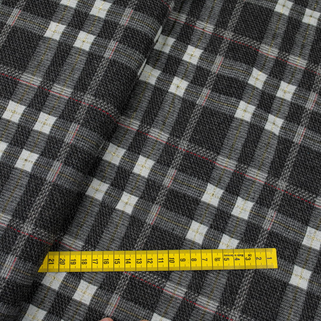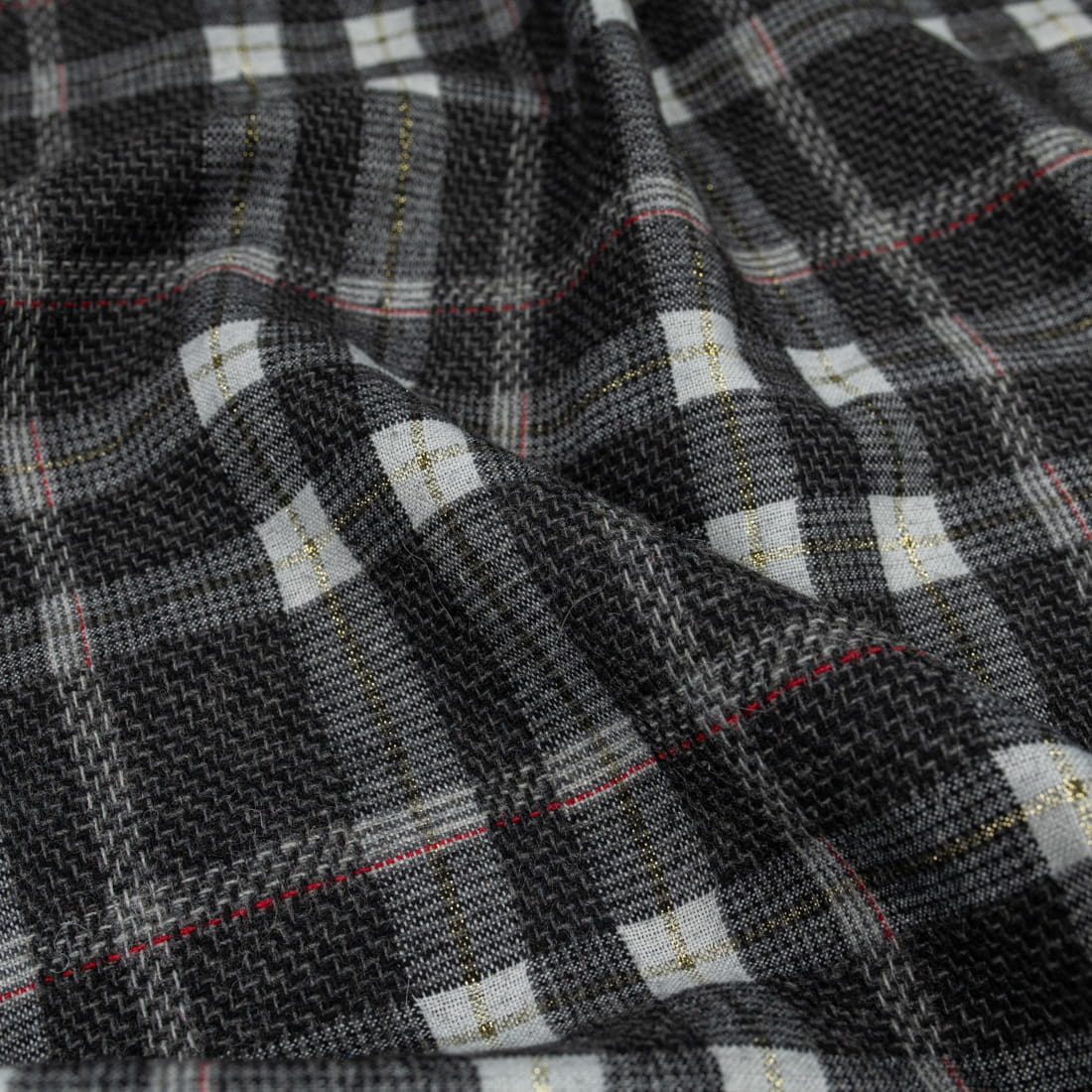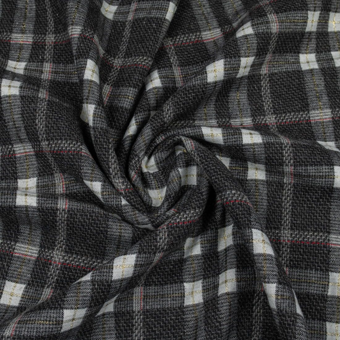 Tkanina płaszczowa wzór krata w odcieniach szarości ze złotą nitką