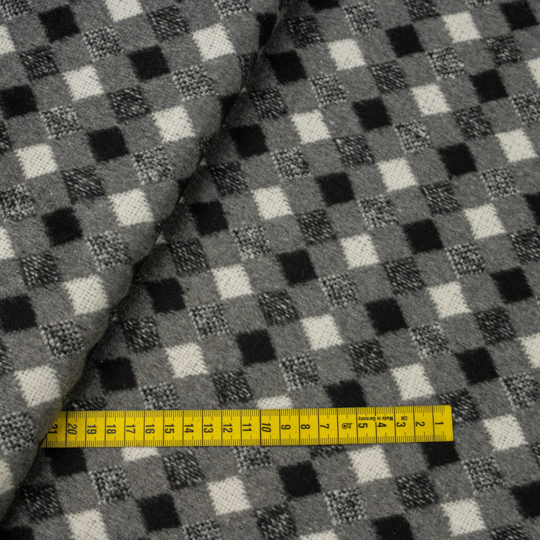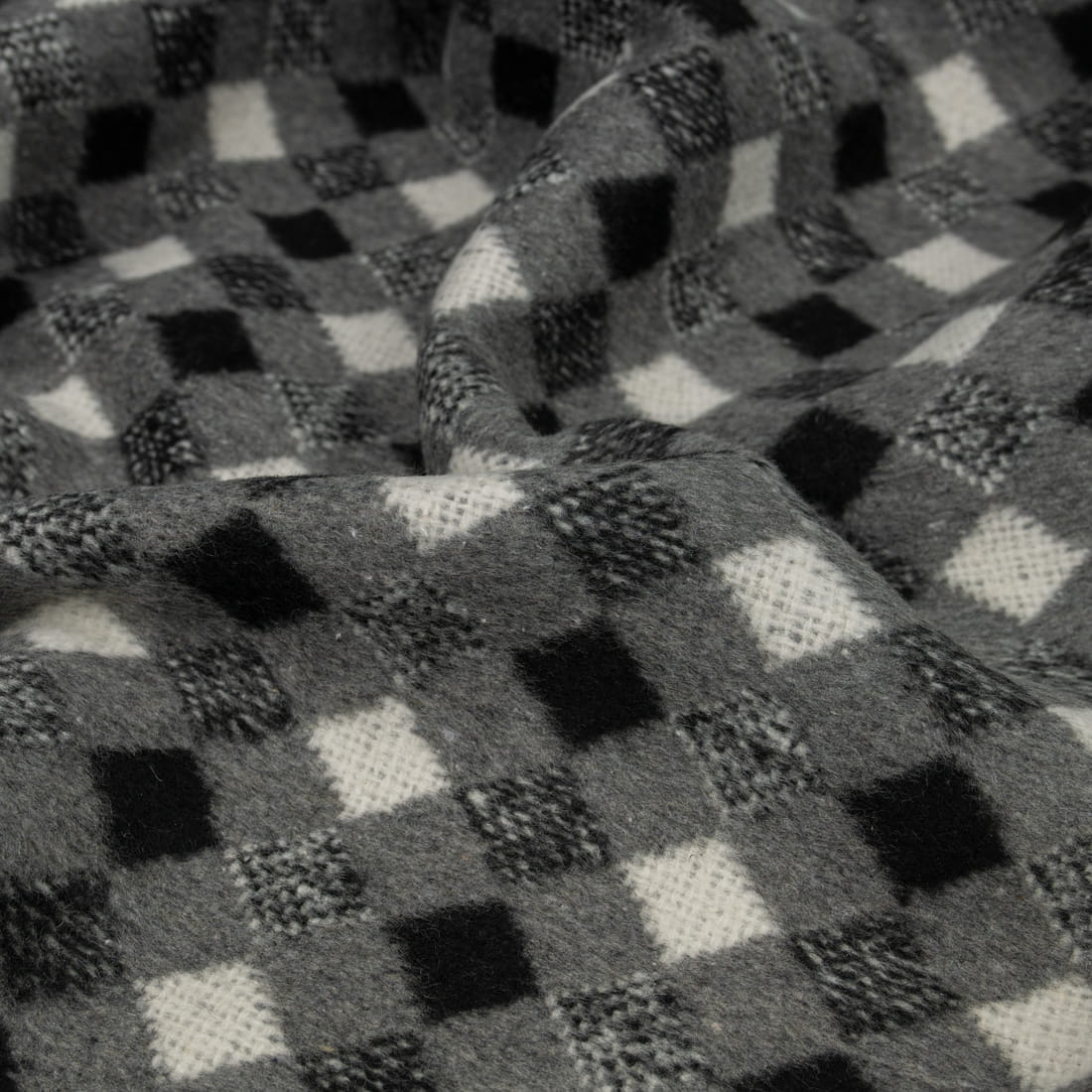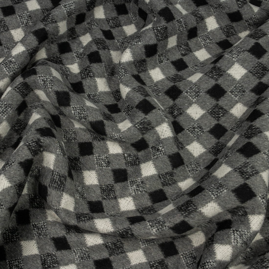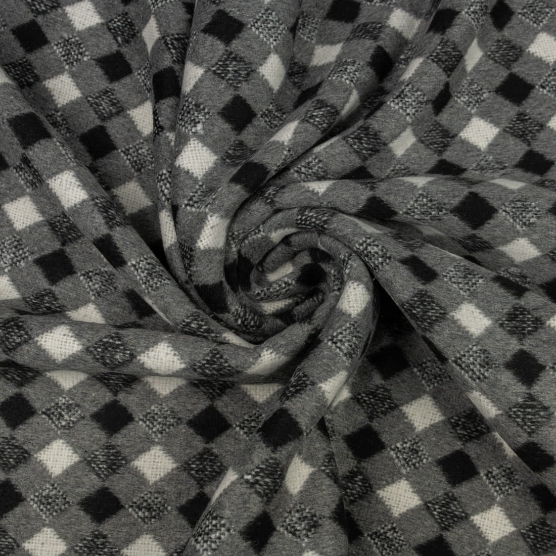 Tkanina płaszczowa wzór romby biało-czarne na szarym tle