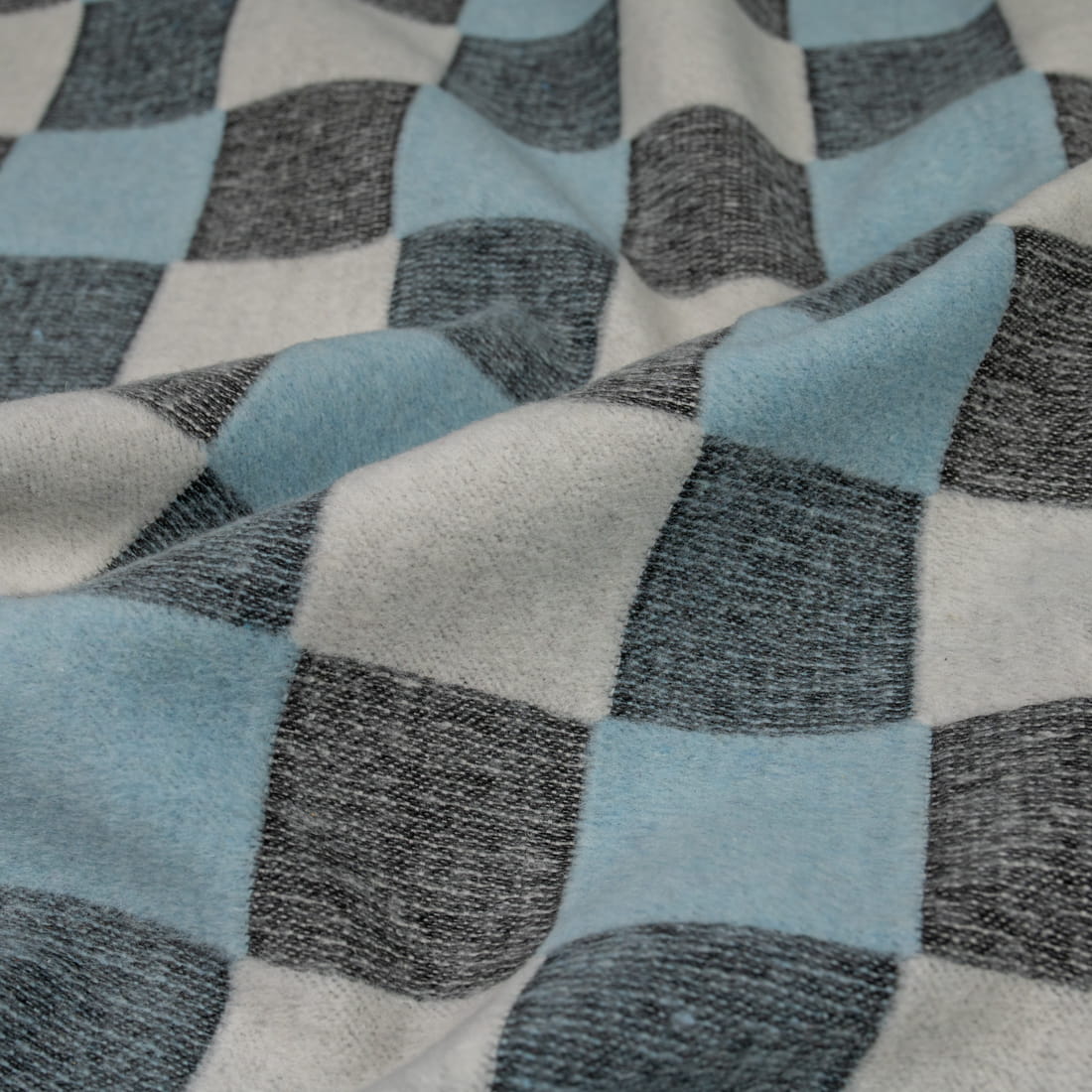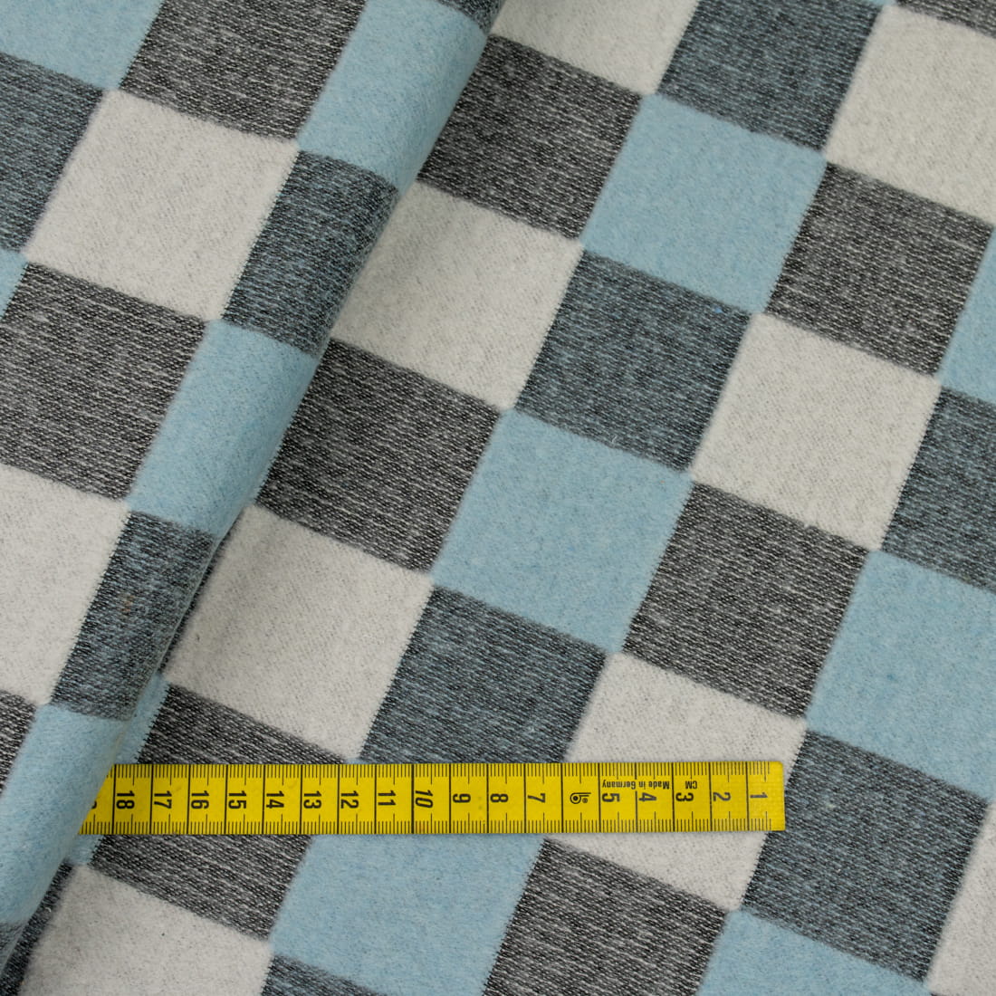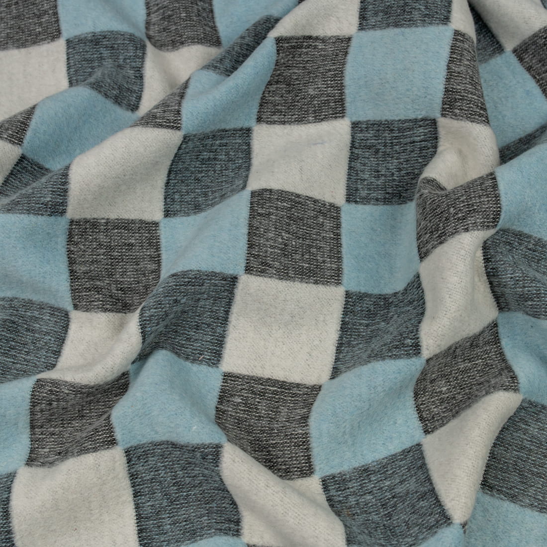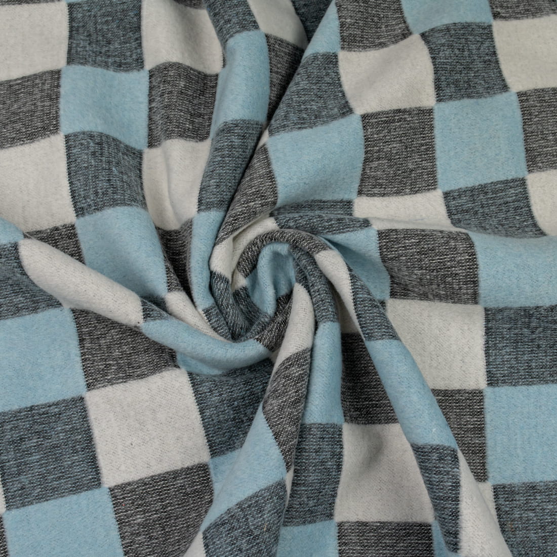 Tkanina płaszczowa wzór szachownica kolor czarny melanż/błękitny /biały