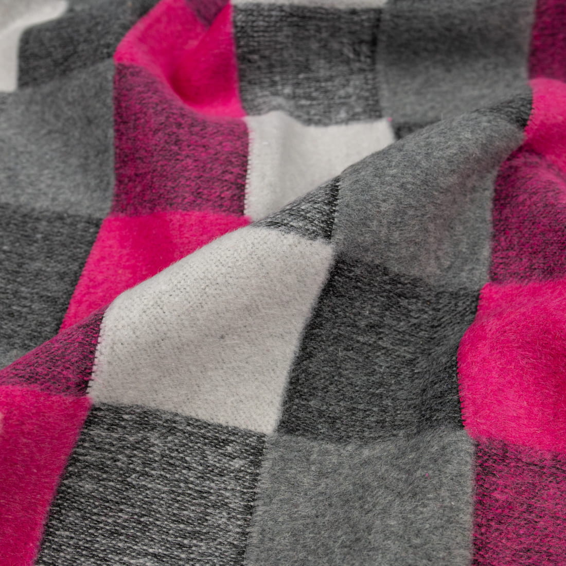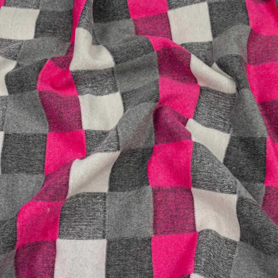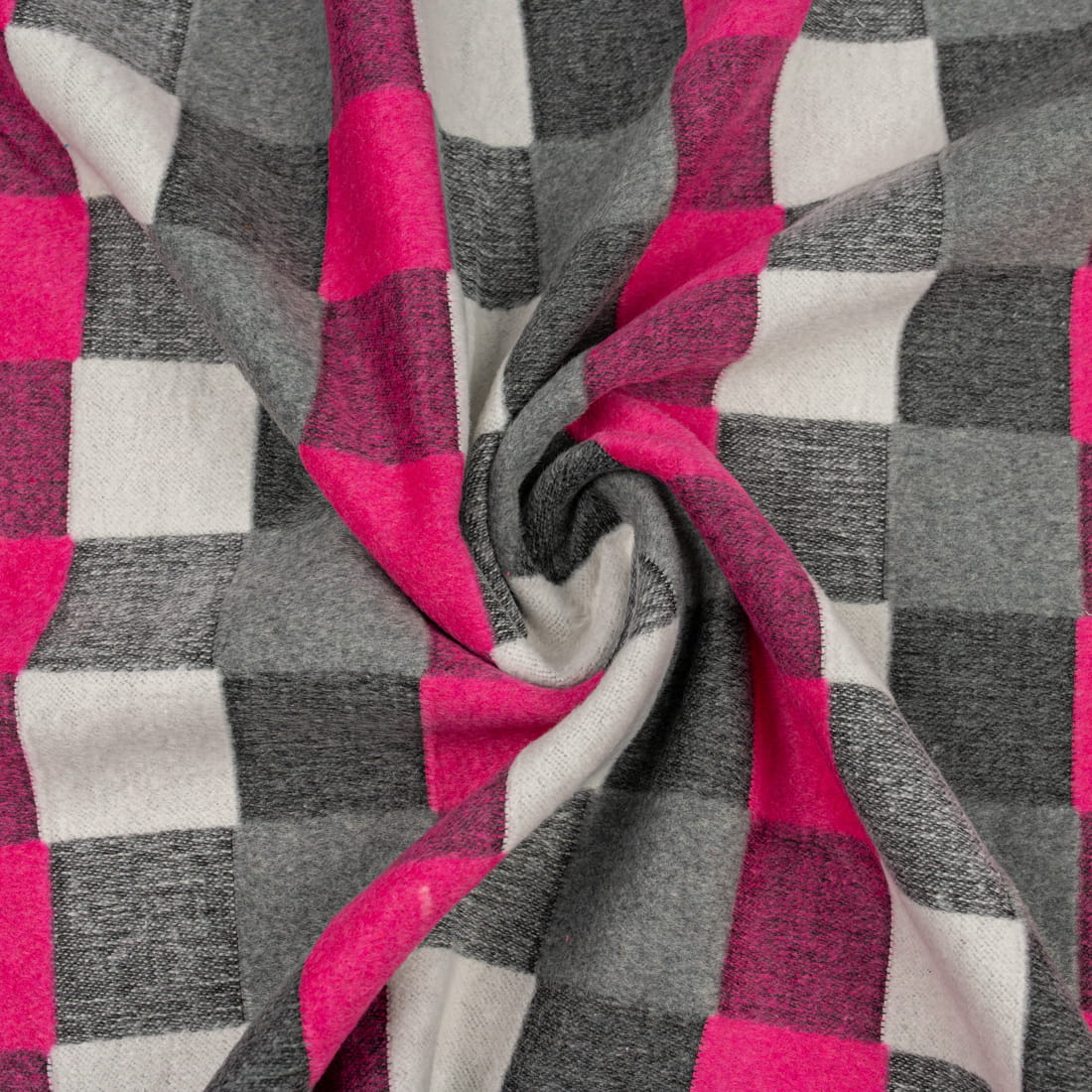 Tkanina płaszczowa wzór szachownica kolor szary melanż/ różowy