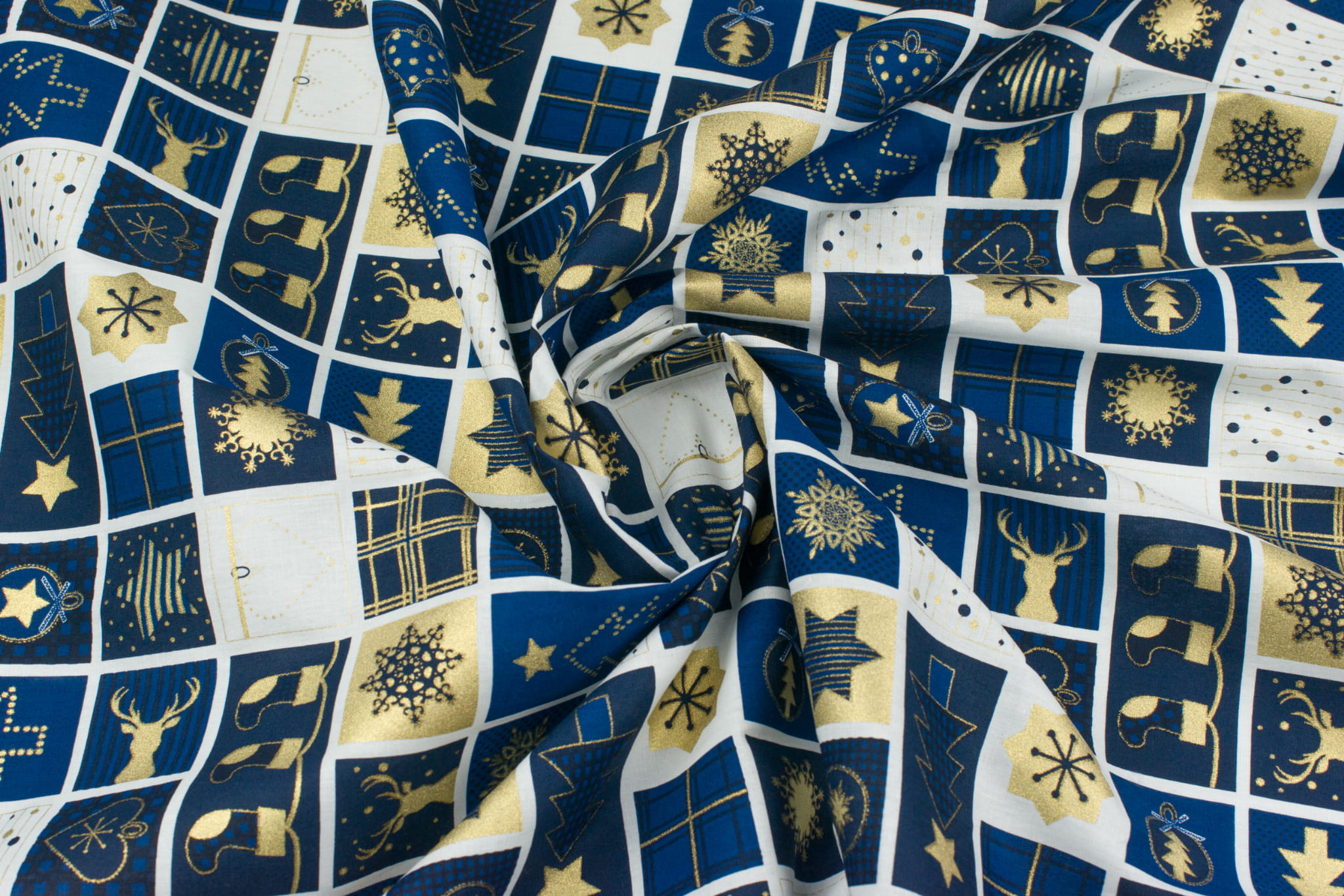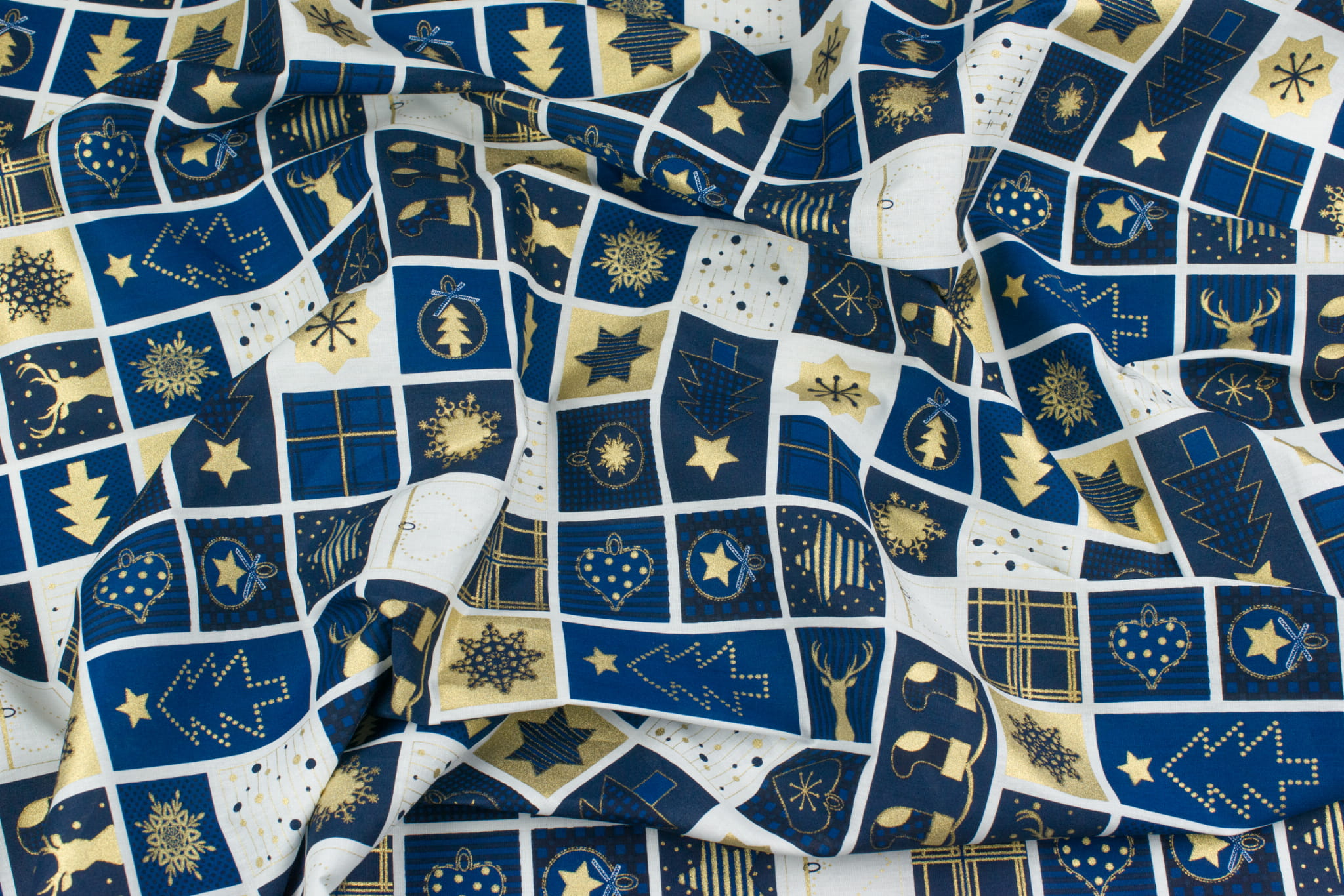 Tkanina popelina wzór świąteczny kolor granatowy