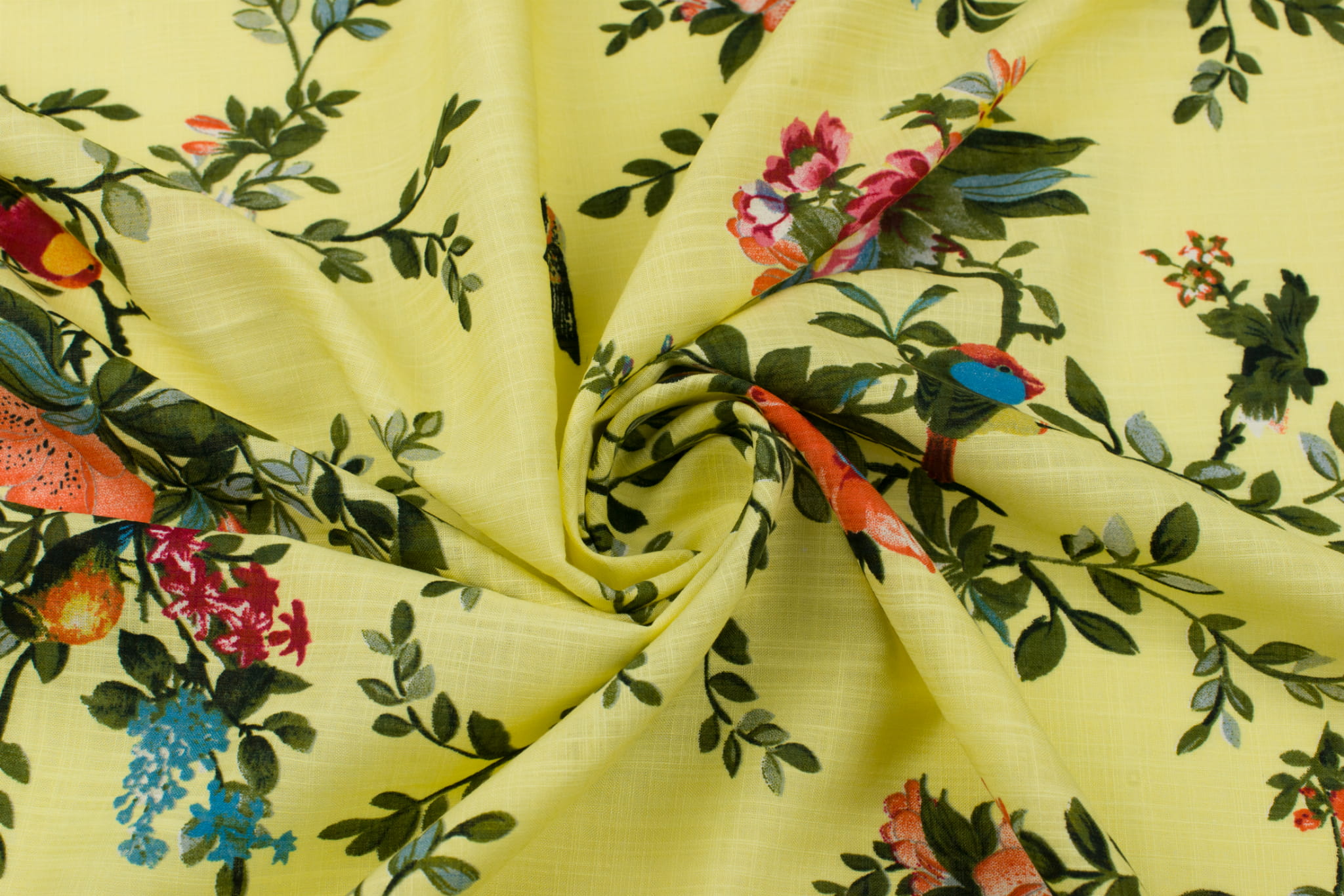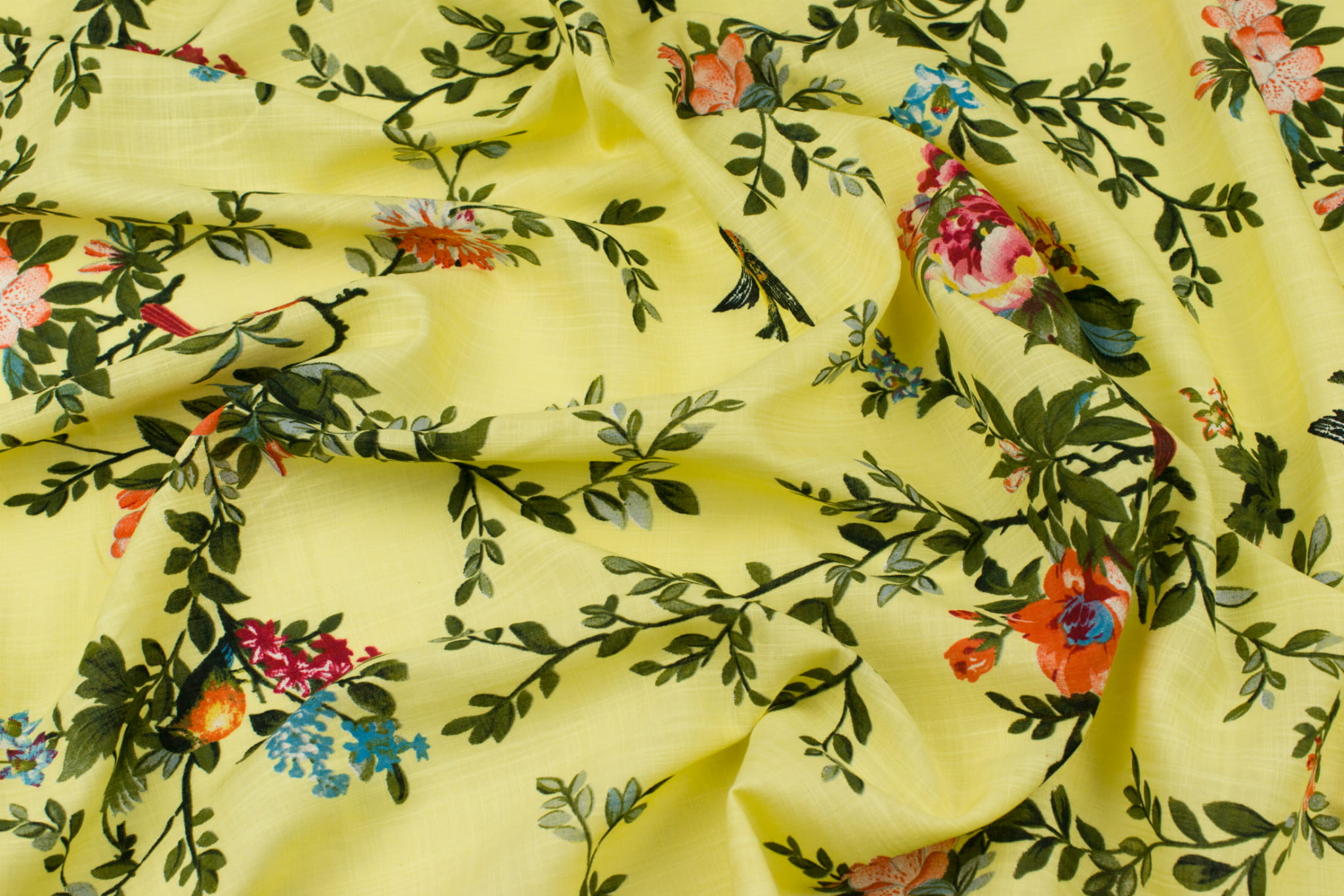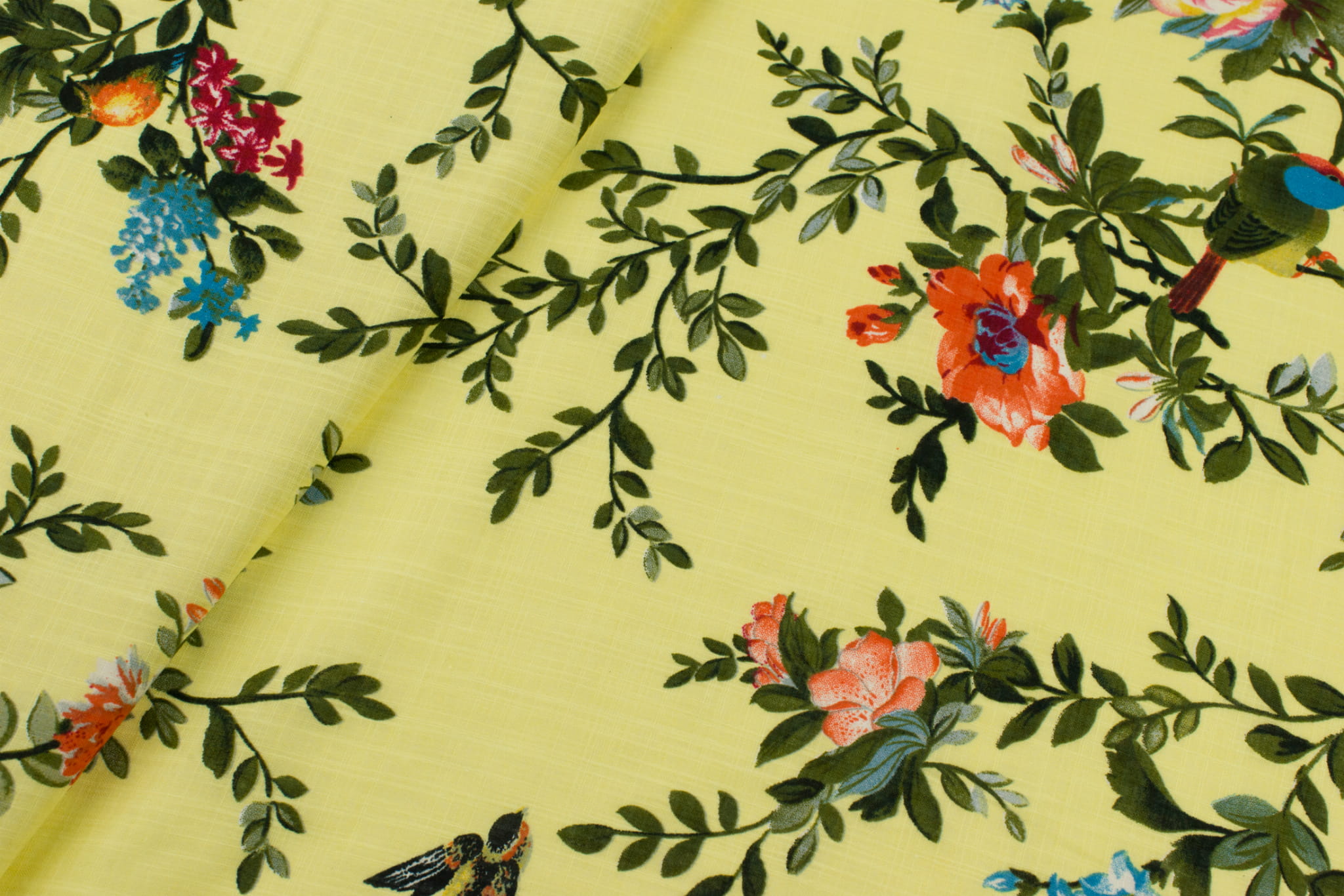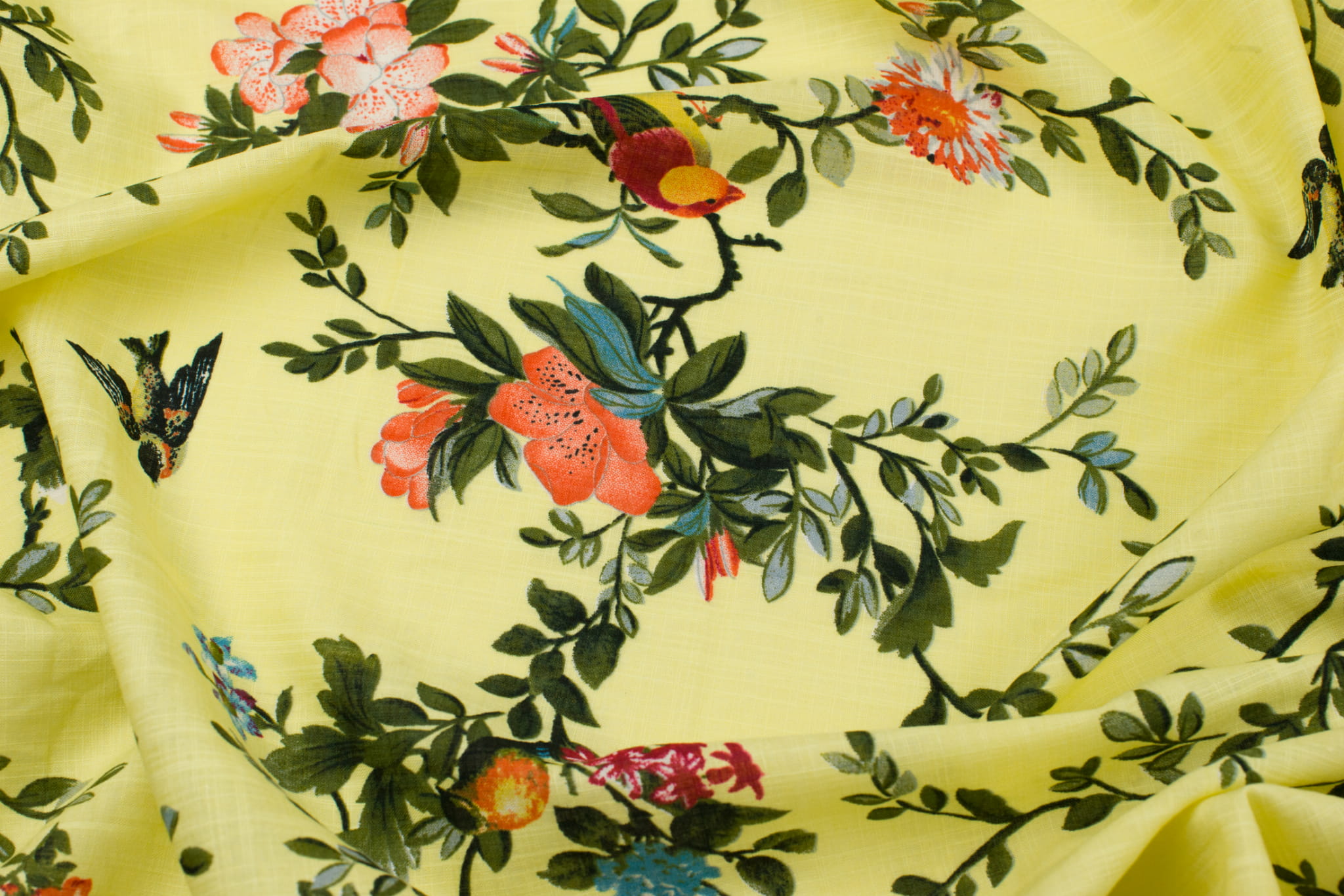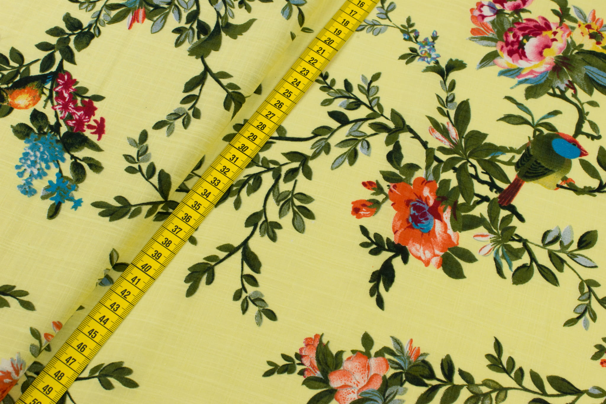 Tkanina popelina zacinka wzór kwiaty, tło żółte