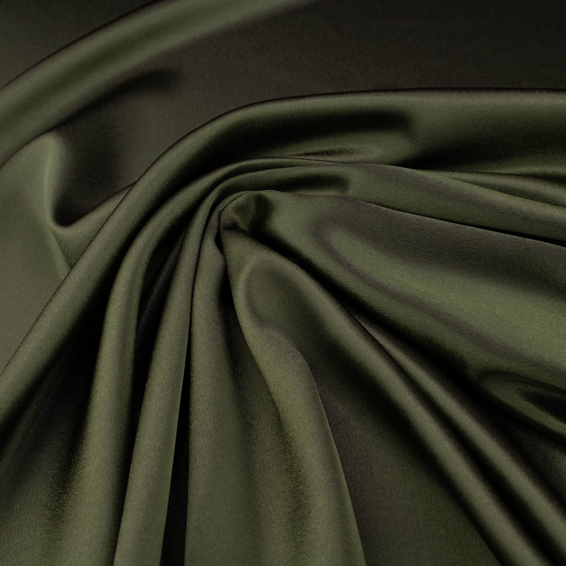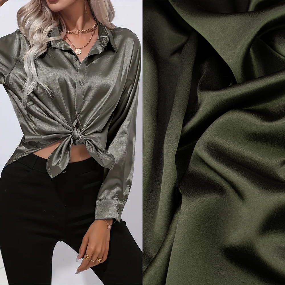 Cechy charakterystyczne tkaniny satyna krepa w kolorze ciemnej oliwki: