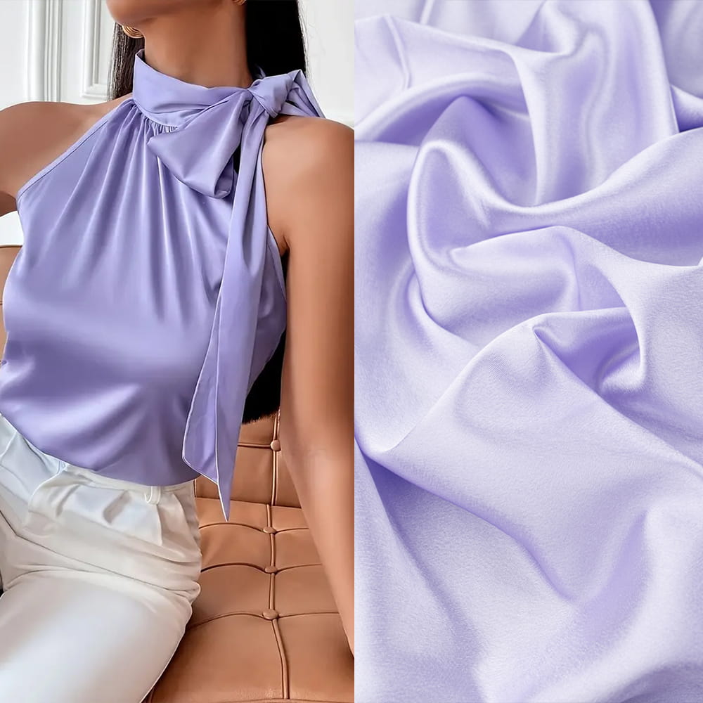 Cechy charakterystyczne tkaniny satyna krepa w kolorze lilaróż: