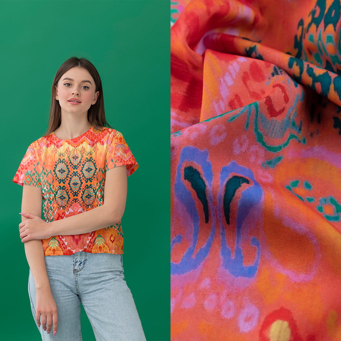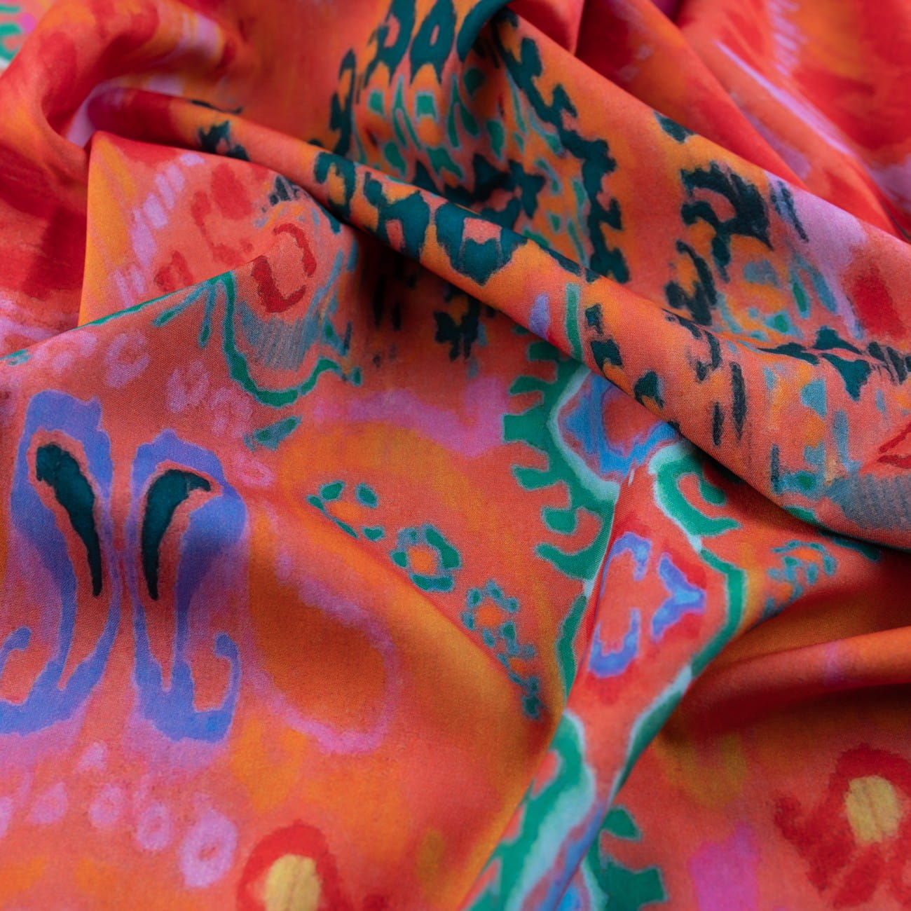 Tkanina Silki z orientalnym wzorem w odcieniach czerwieni to połączenie elegancji i komfortu. Dzięki swojej miękkości, elastyczności i przyjemnemu dotykowi, materiał doskonale sprawdzi się w tworzeniu stylowych i wygodnych elementów garderoby oraz dekoracji wnętrz. Wzór orientalny dodaje charakteru każdej kreacji, czyniąc ją wyjątkową.