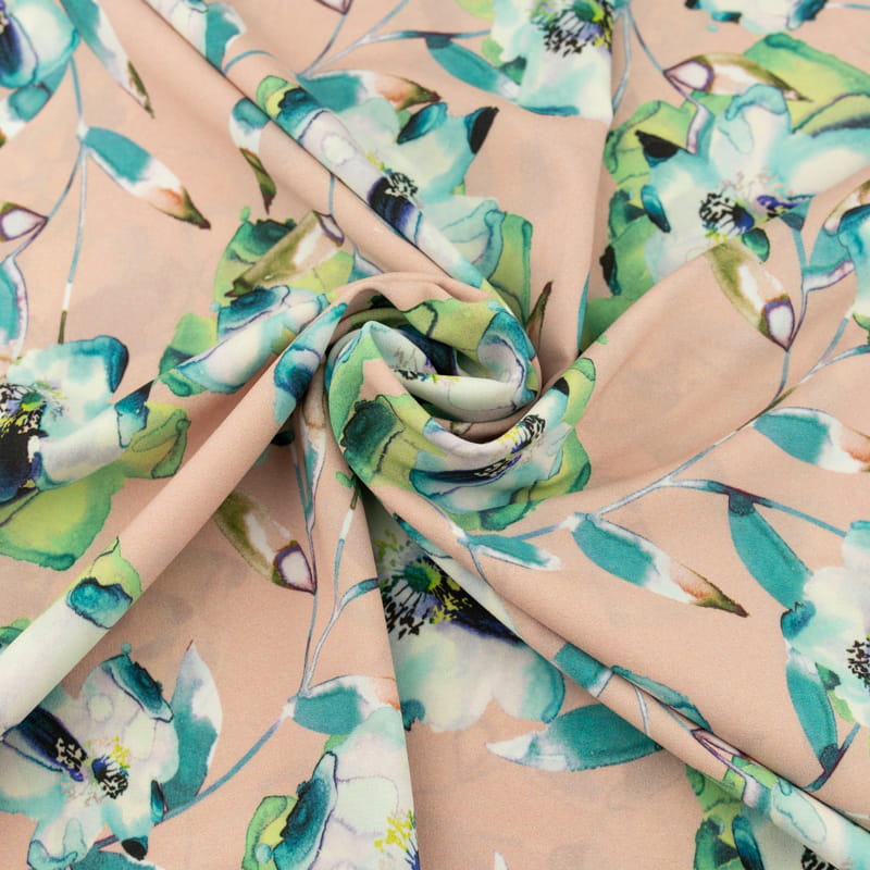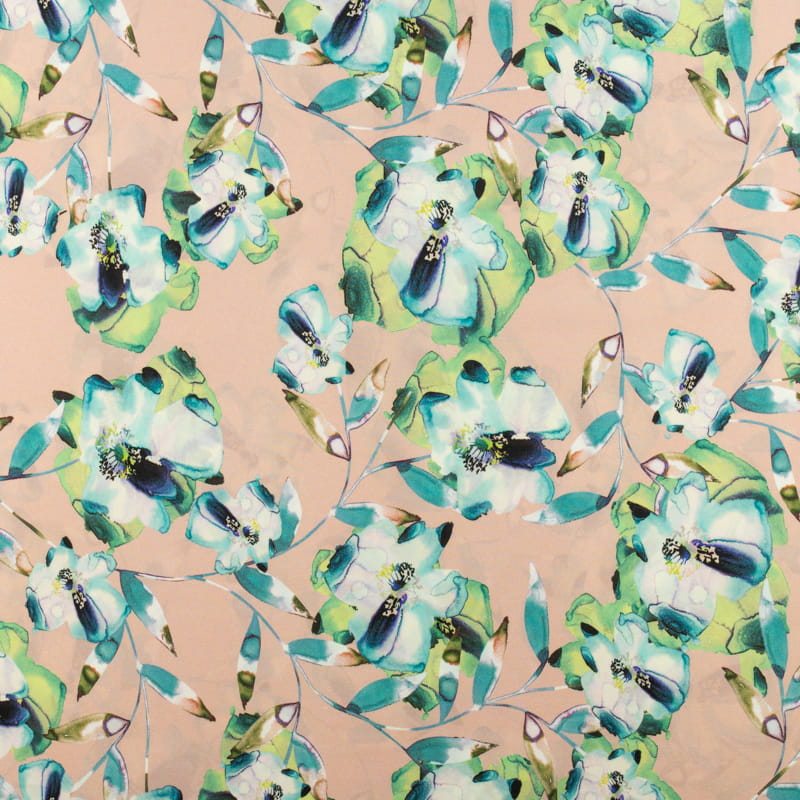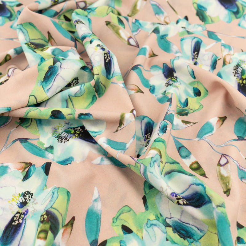 Tkanina silki wzór kwiaty kolor różowo beżowy