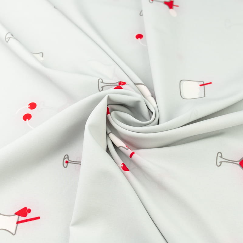 Tkanina silki wzór party koktajle kolor jasny szary