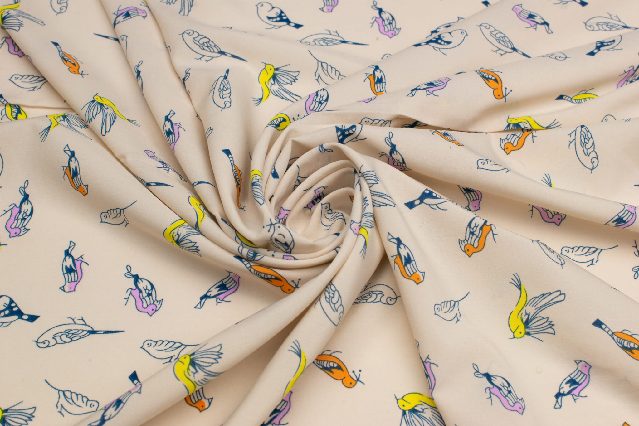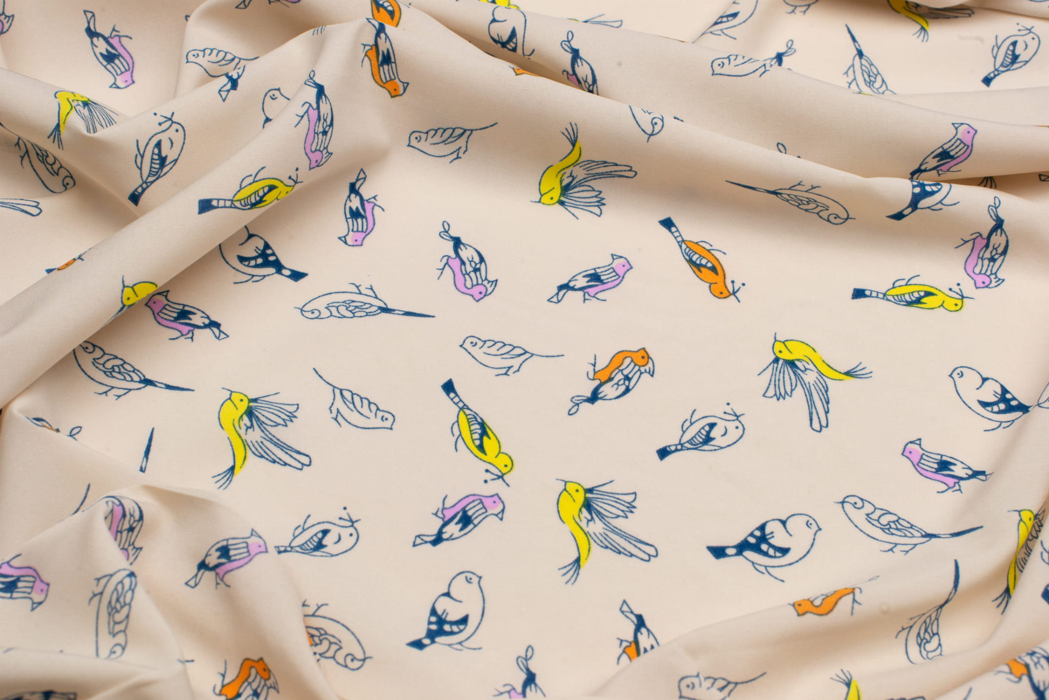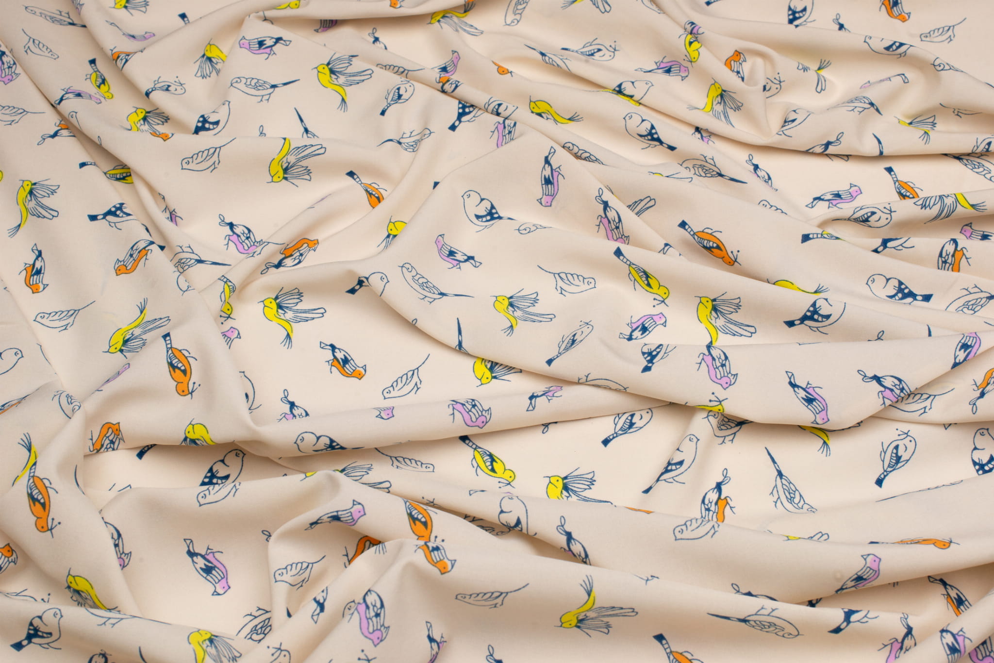 Tkanina silki wzór ptaki kolor brzoskwiniowy