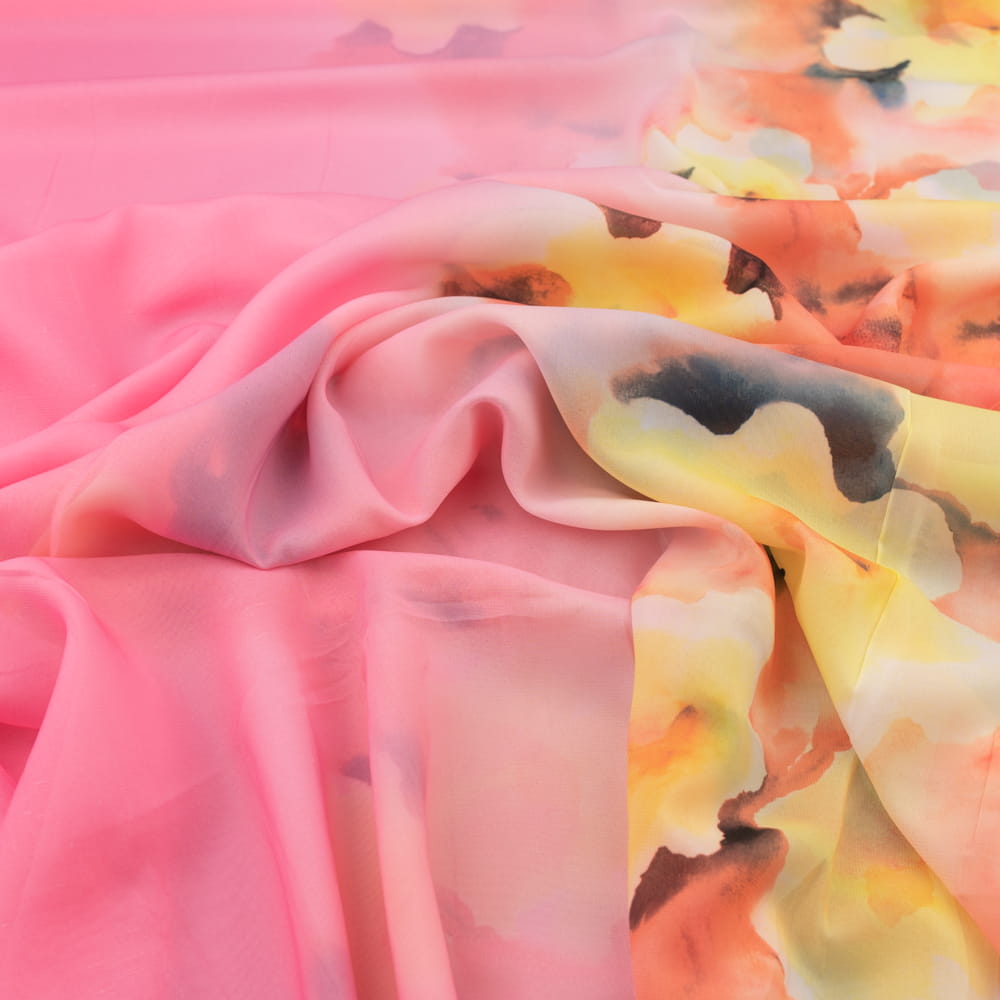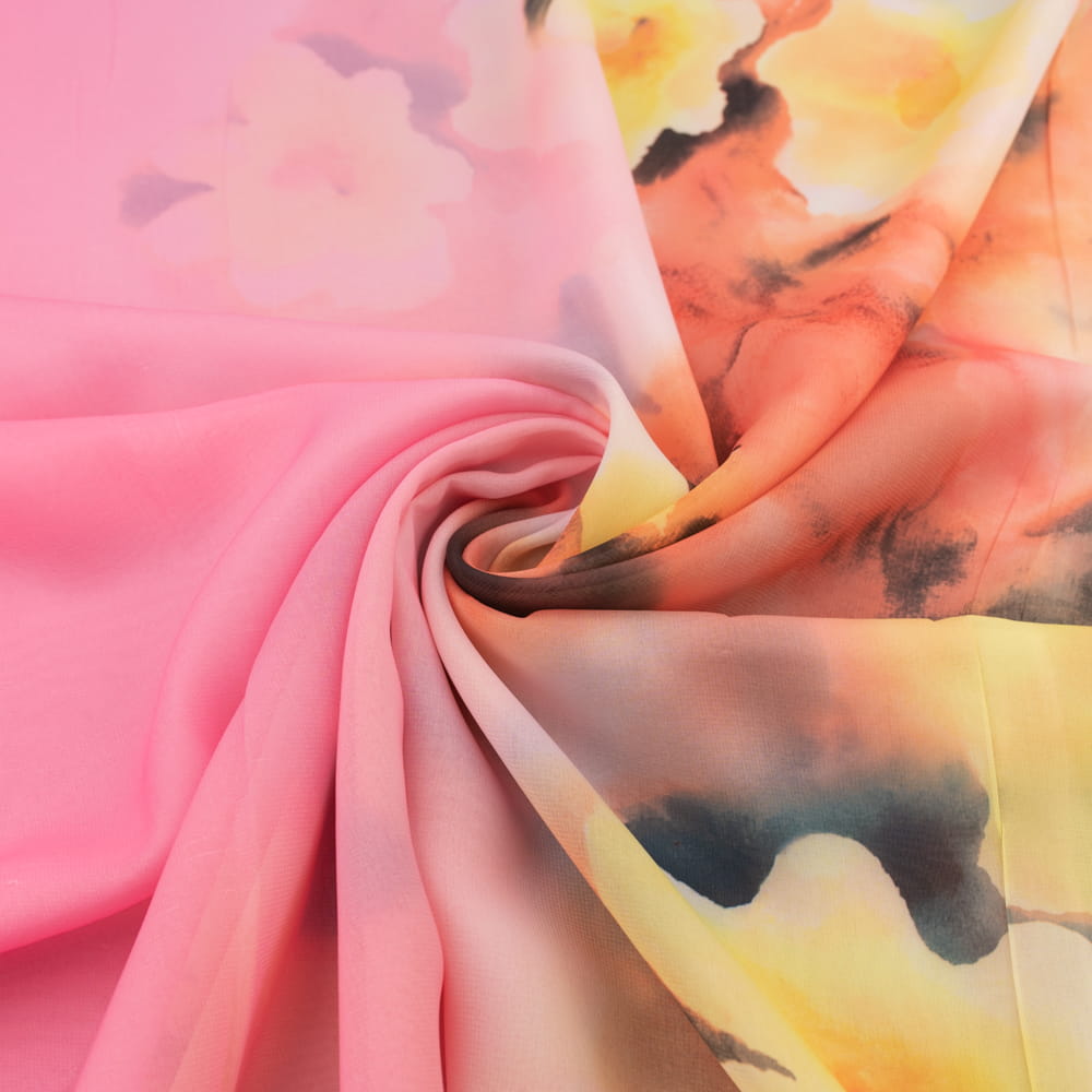Tkanina szyfon border dwustronny wzór kwiaty kolor różowy