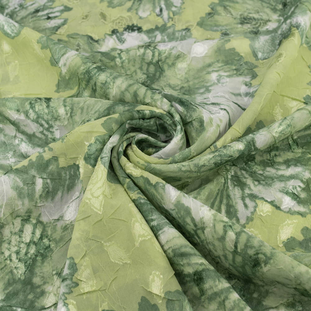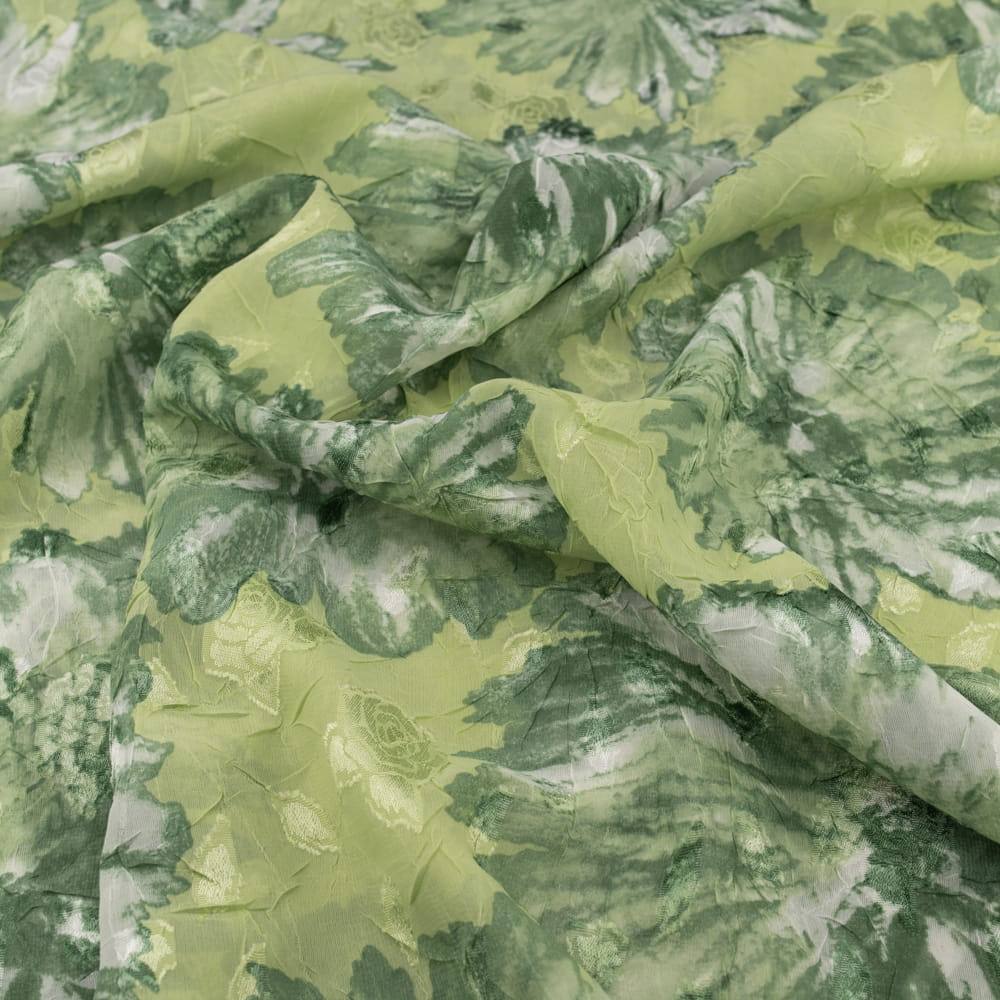 Tkanina szyfon gnieciony wzór kwiaty kolor jasny zielony