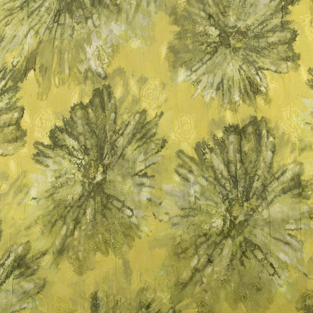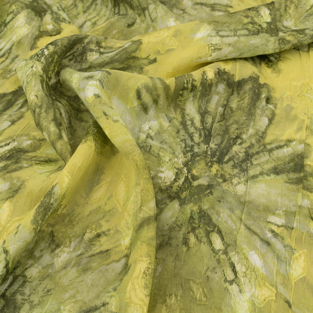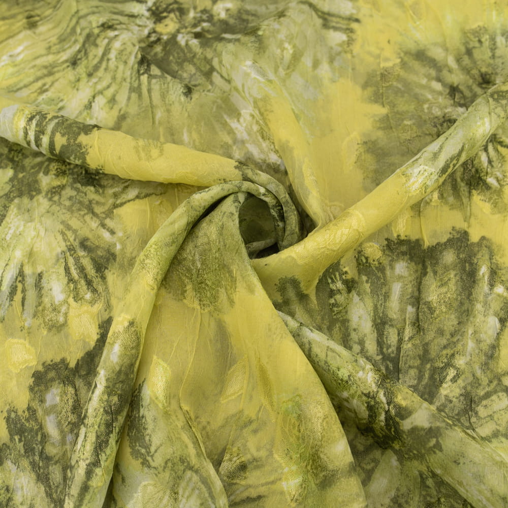 Tkanina szyfon gnieciony wzór kwiaty kolor żółto zielony