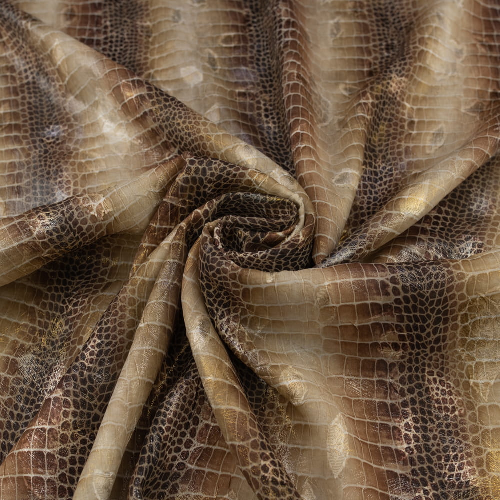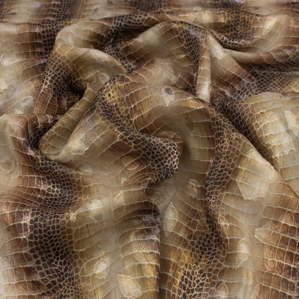 Tkanina szyfon haftowany wzór skóra krokodyla kolor brązowy
