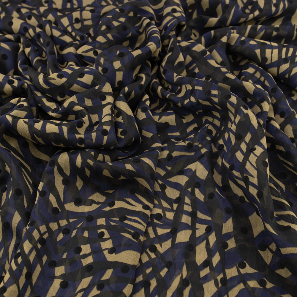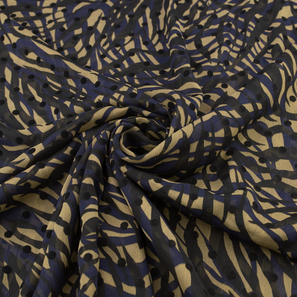Tkanina szyfon kreszowany wzór zebra i grochy flok