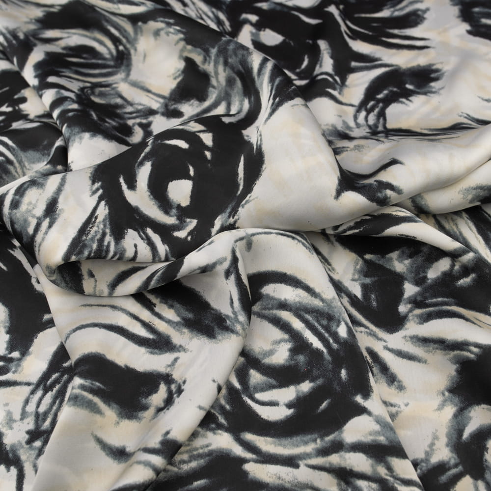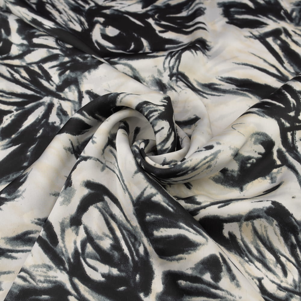 Tkanina szyfon satynowy wzór abstrakcyjny kolor czarny