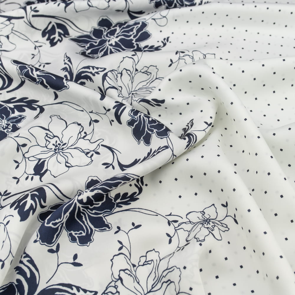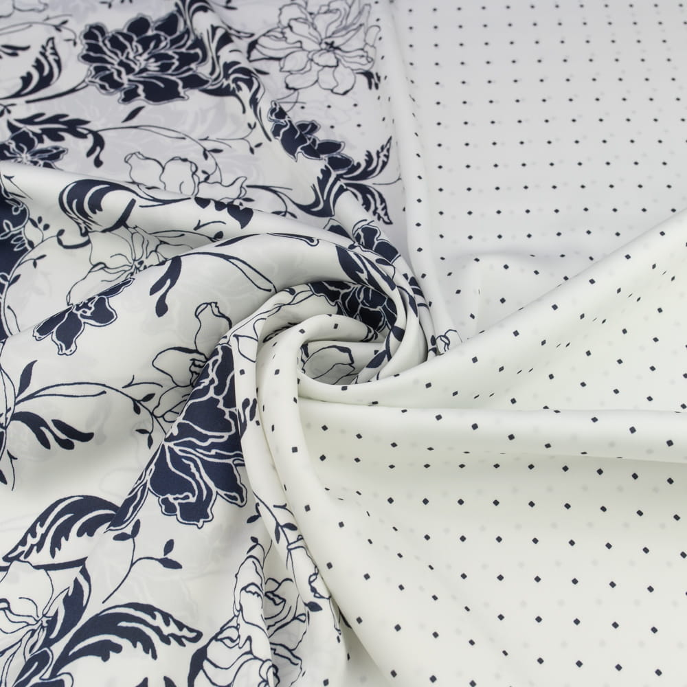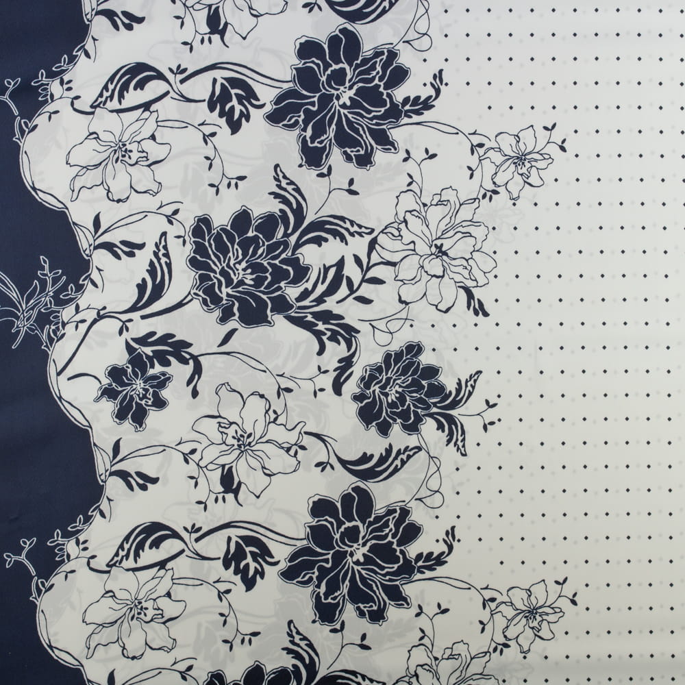 Tkanina szyfon satynowy wzór border dwustronny kolor złamany biały
