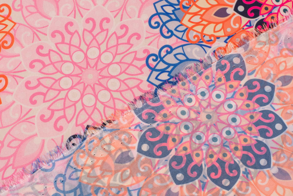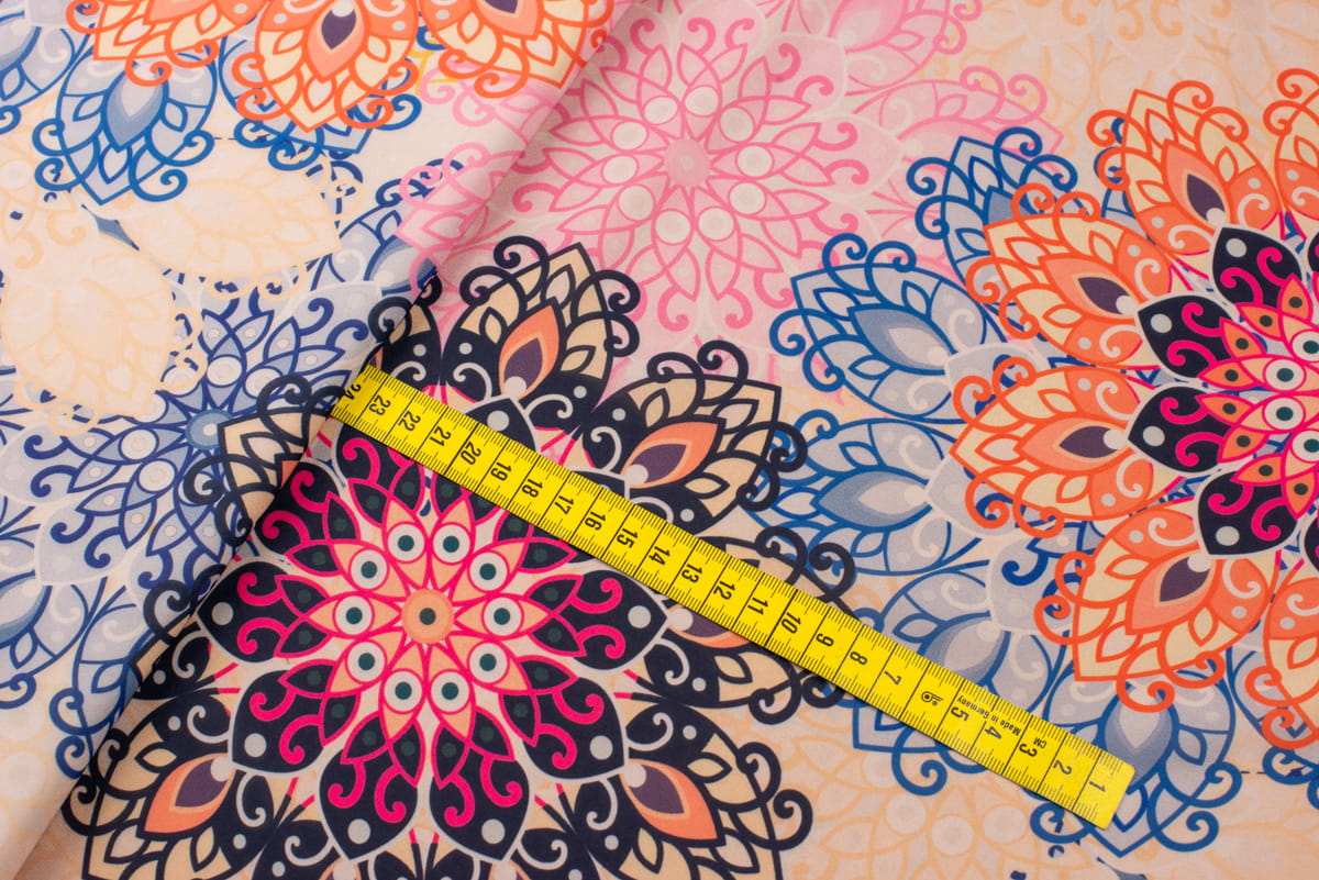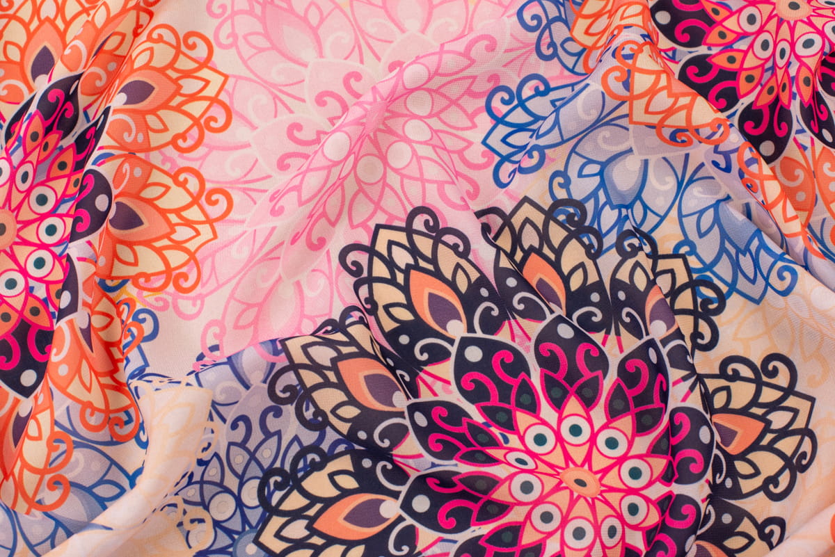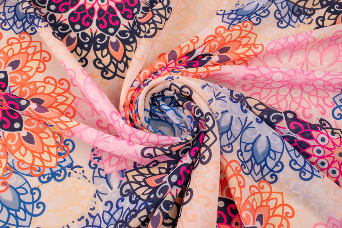Tkanina szyfon wzór Orientalny Azjatycki kolorowy pomarańczowy