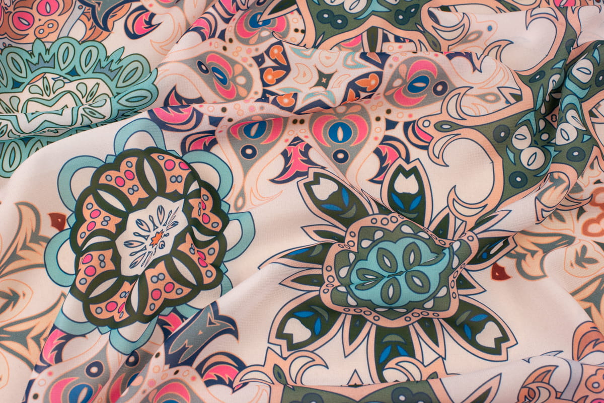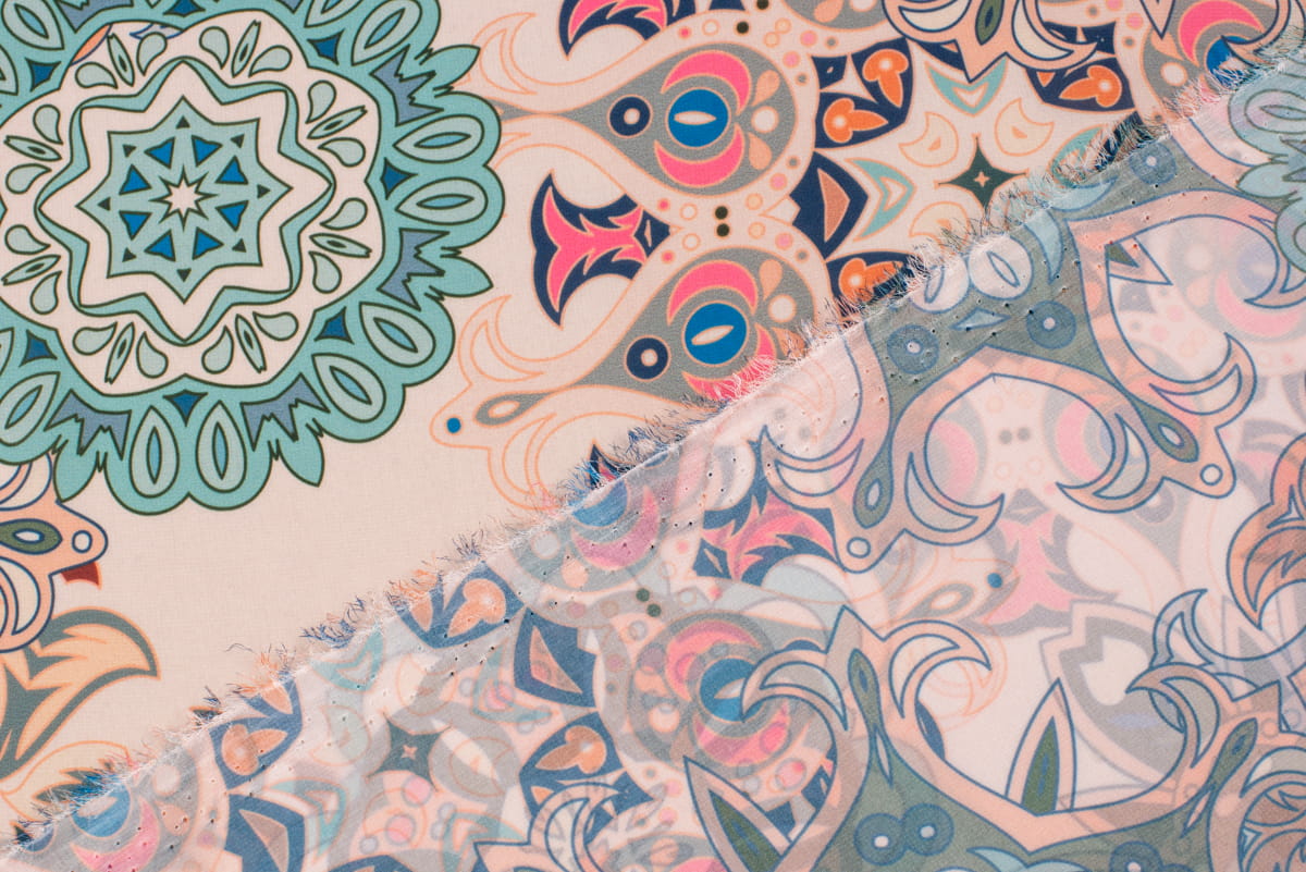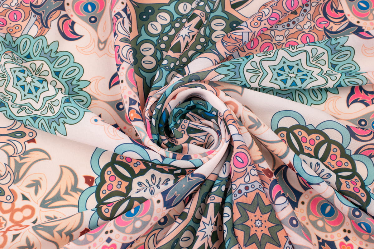 Tkanina szyfon wzór Orientalny Azjatycki odcienie zieleni