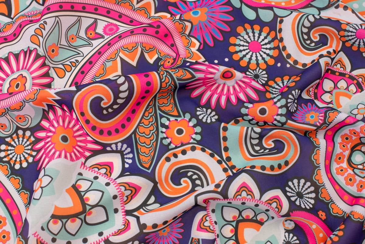 Tkanina szyfon wzór Orientalny kolor granatowy