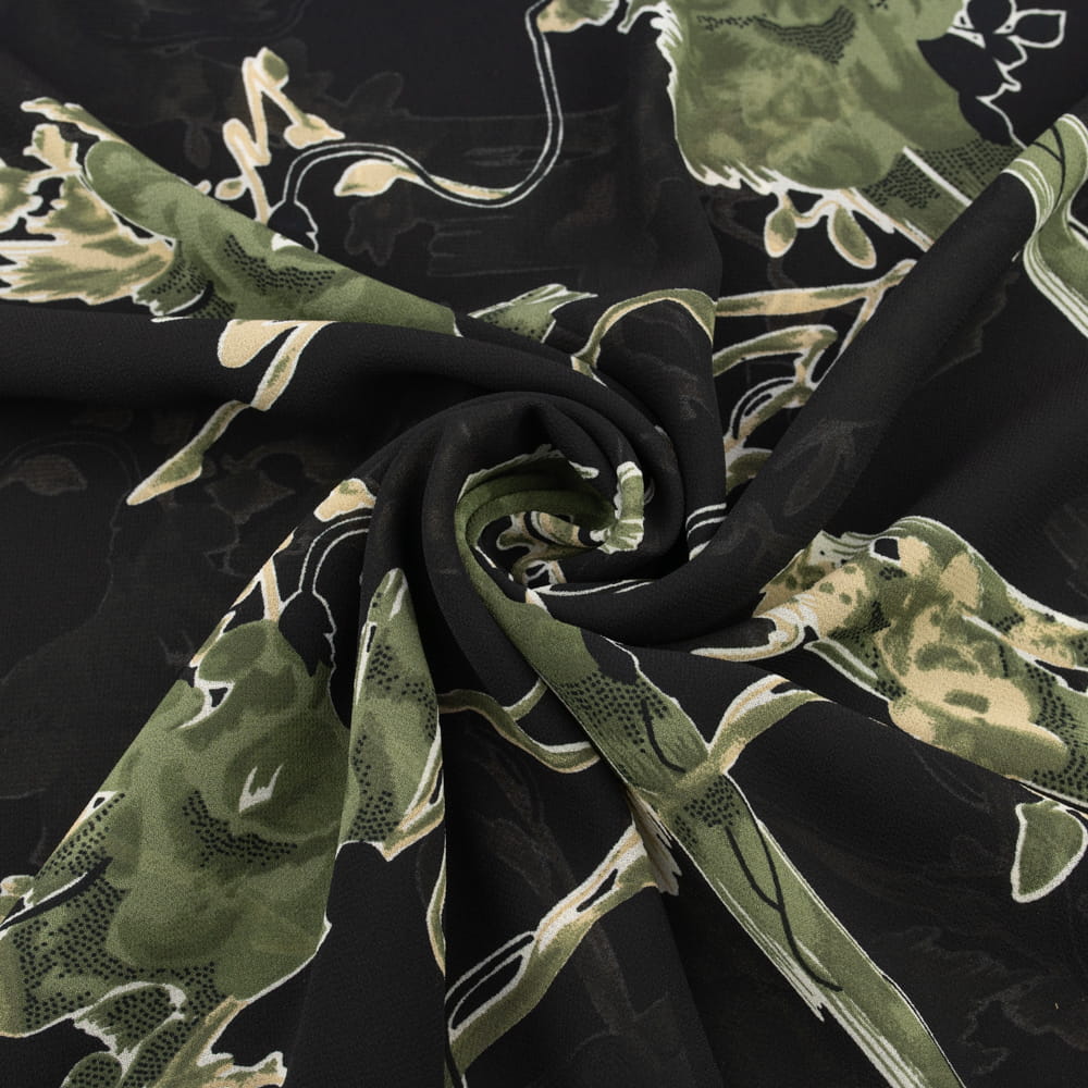 Tkanina szyfon wzór abstrakcyjny kolor czarny