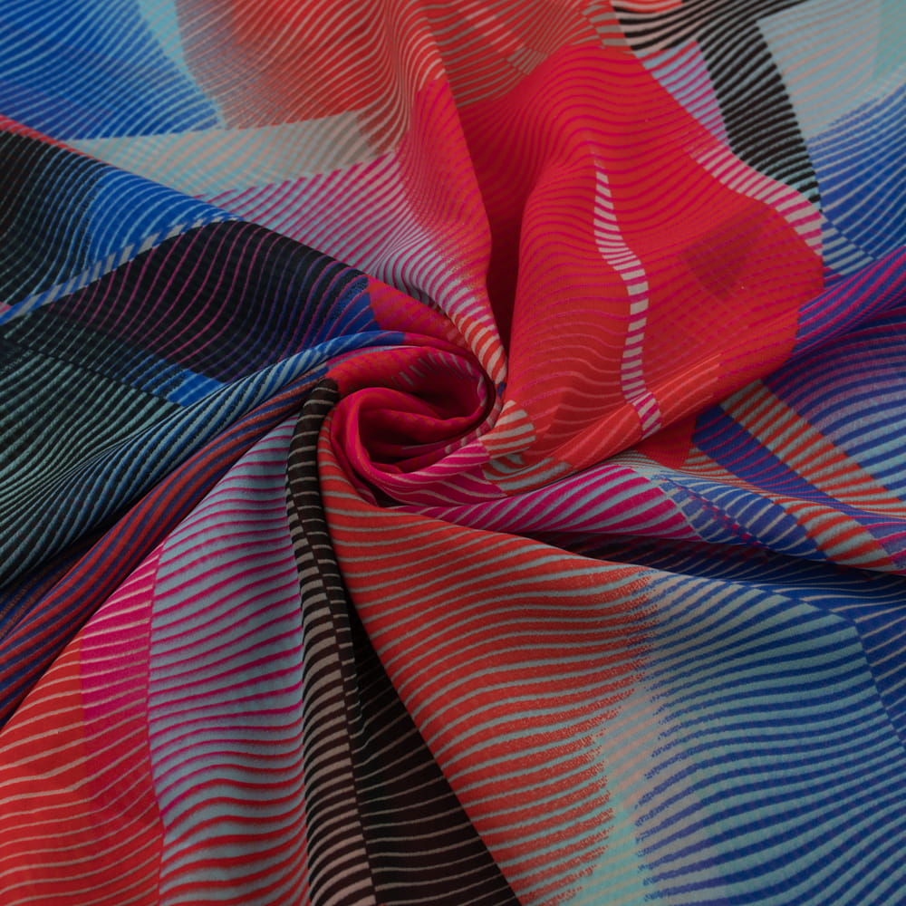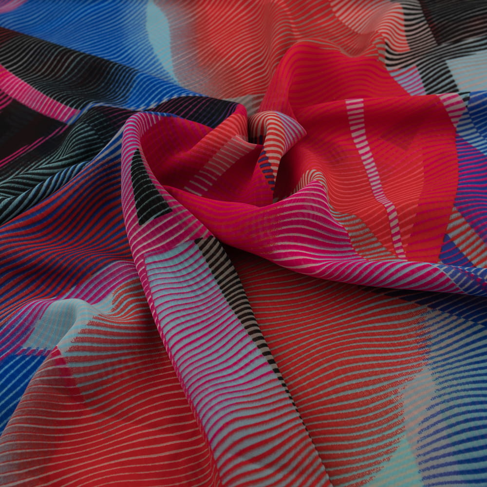 Tkanina szyfon wzór abstrakcyjny kolor czerwono niebieski