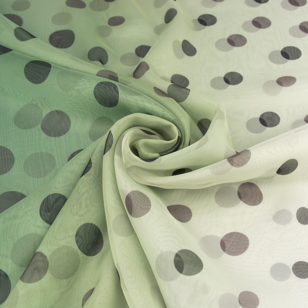 Tkanina szyfon wzór grochy kolor oliwkowy