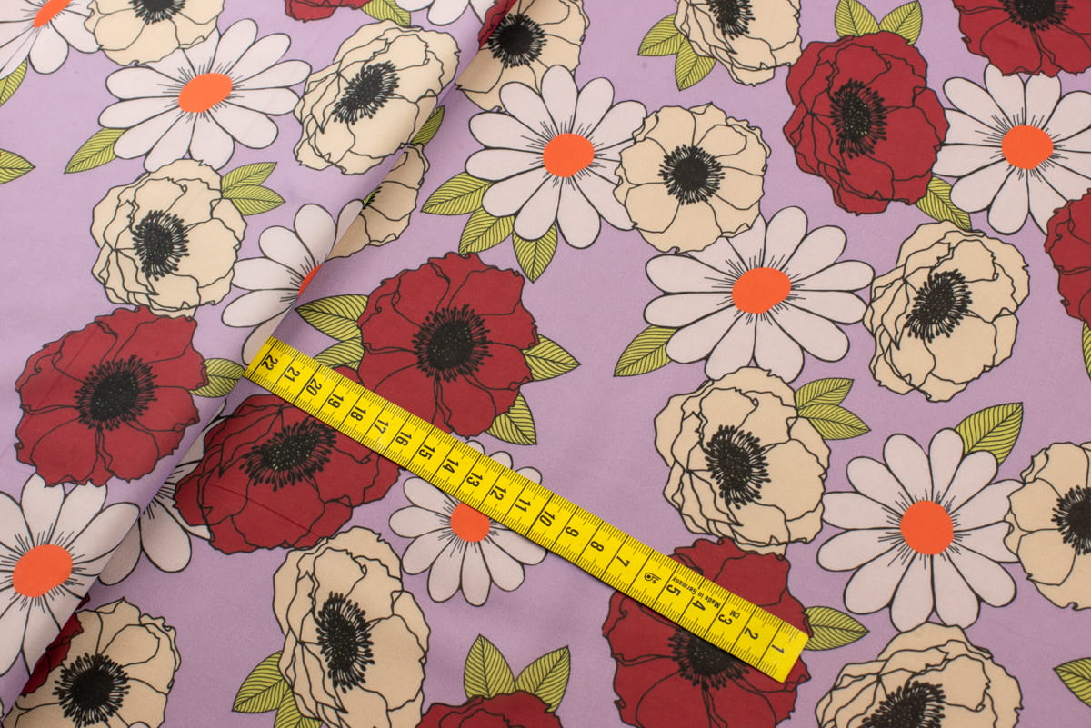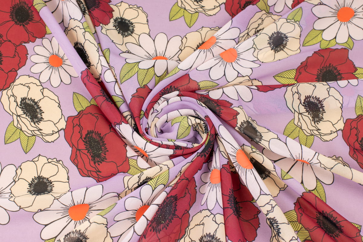 Tkanina szyfon wzór kolorowe kwiaty kolor różowy