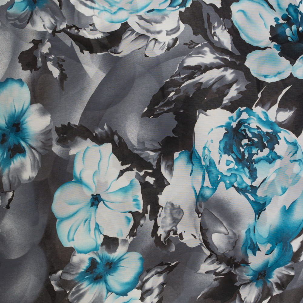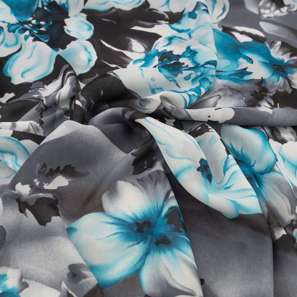 Tkanina szyfon wzór kwiaty kolor niebiesko szary
