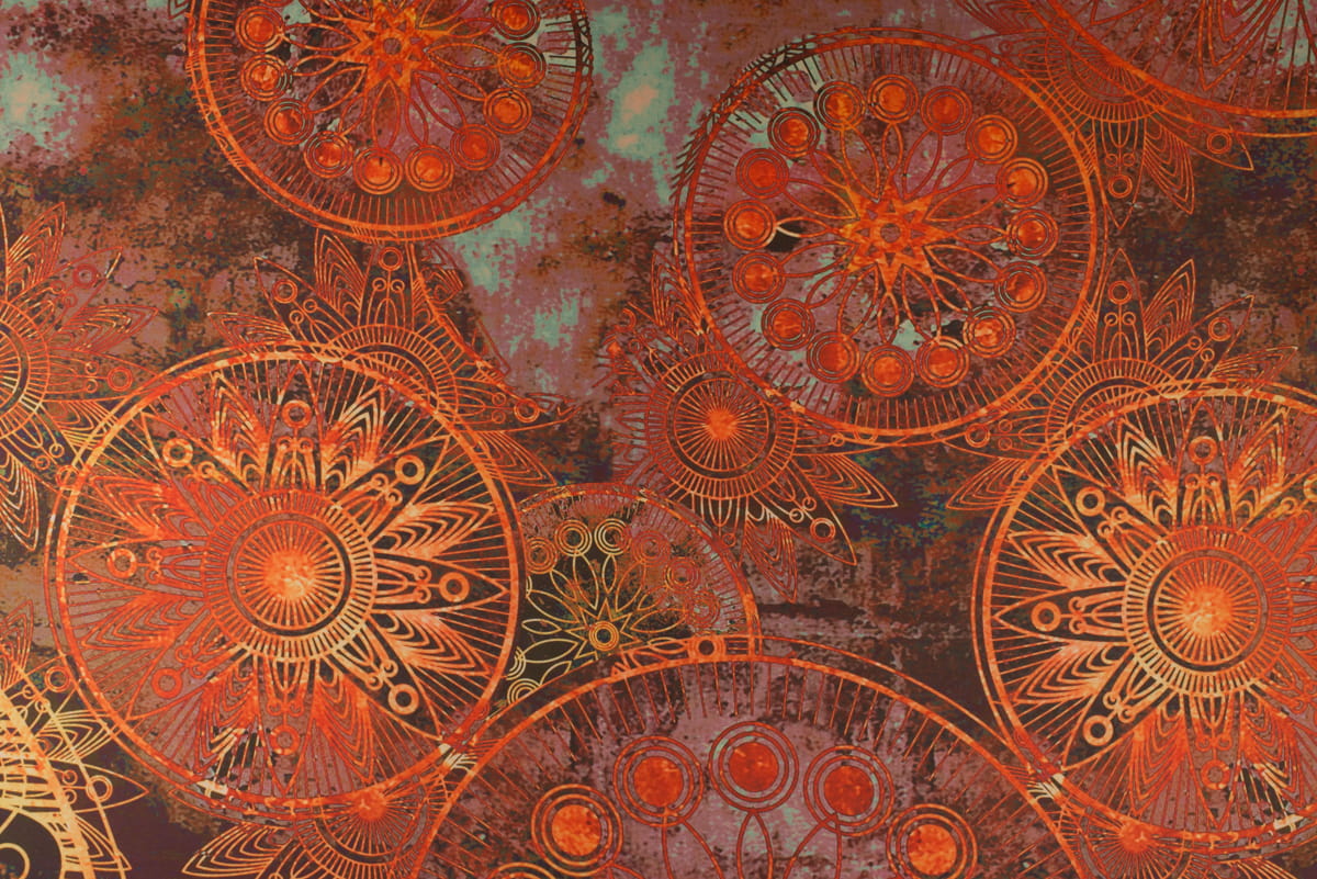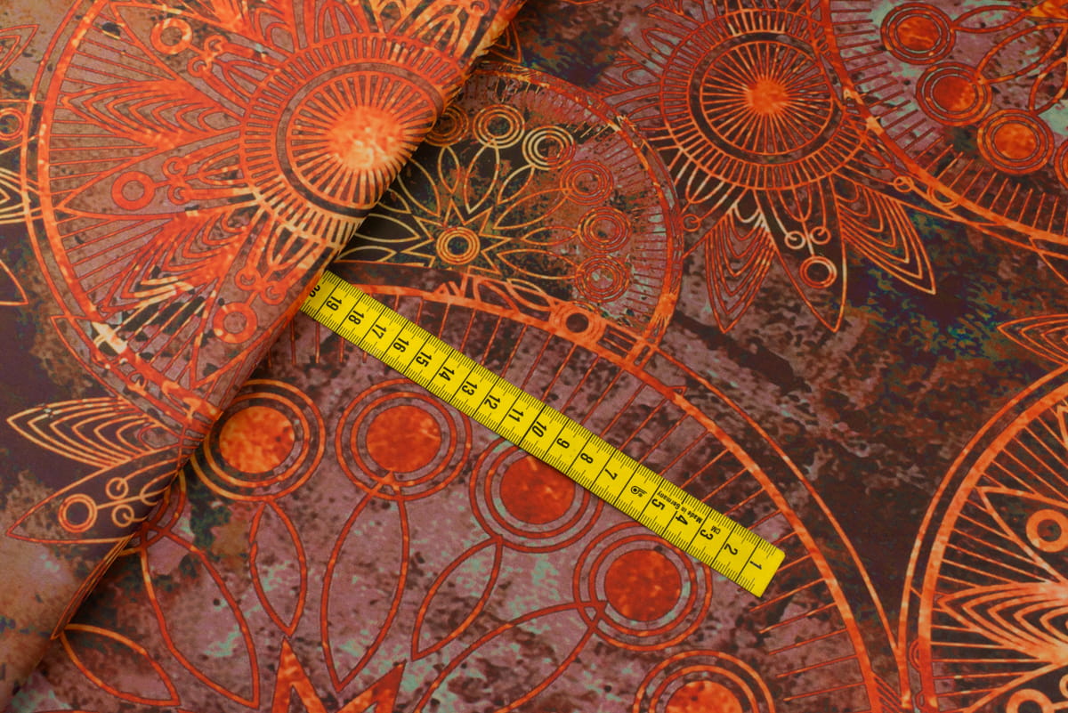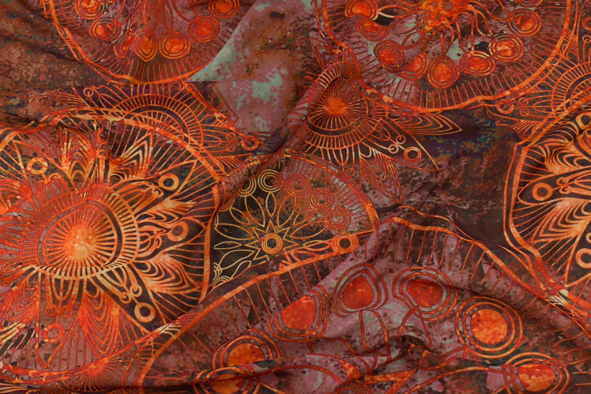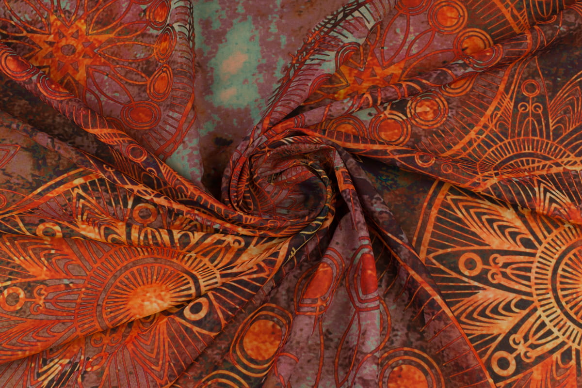 Tkanina szyfon wzór orientalny odcienie czerwonego