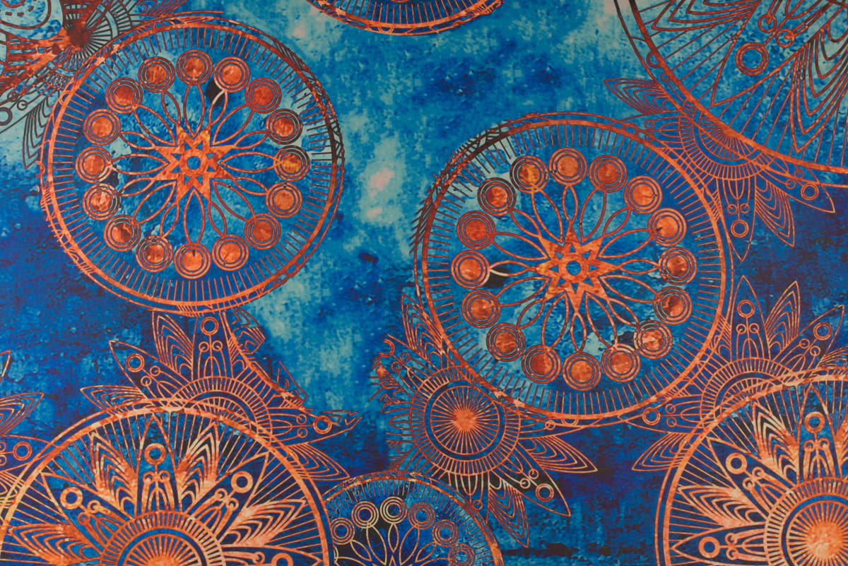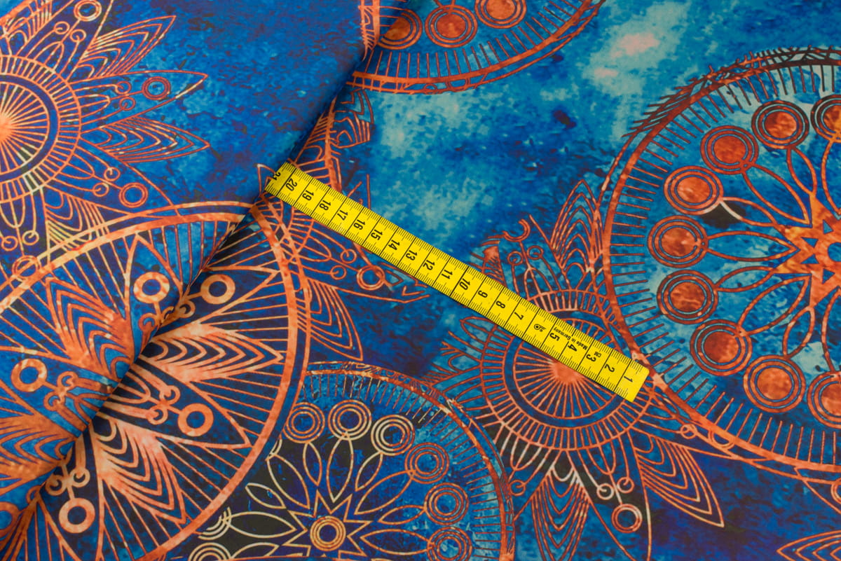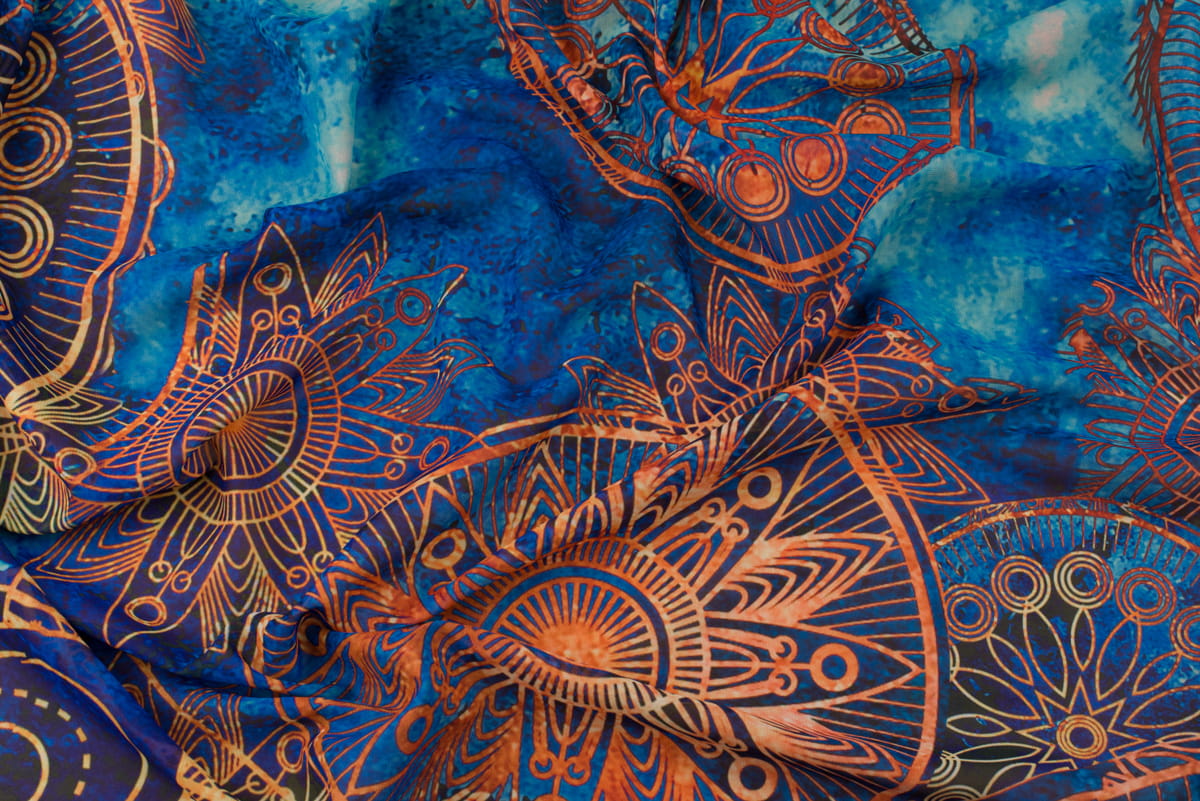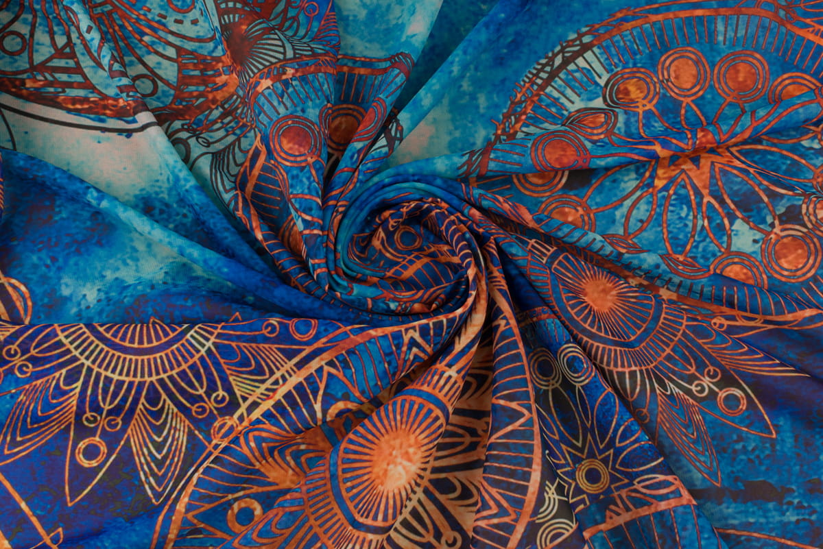 Tkanina szyfon wzór orientalny odcienie niebieskiego