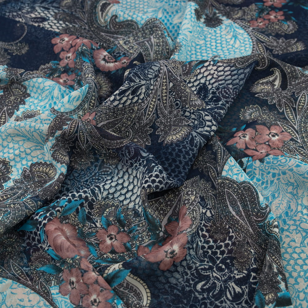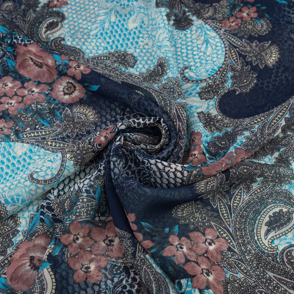 Tkanina szyfon wzór paisley kolor granatowo niebieski