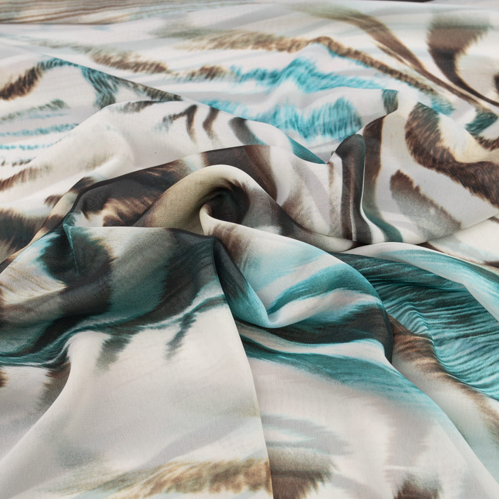 Tkanina szyfon wzór rozmazane fale brązowo zielony