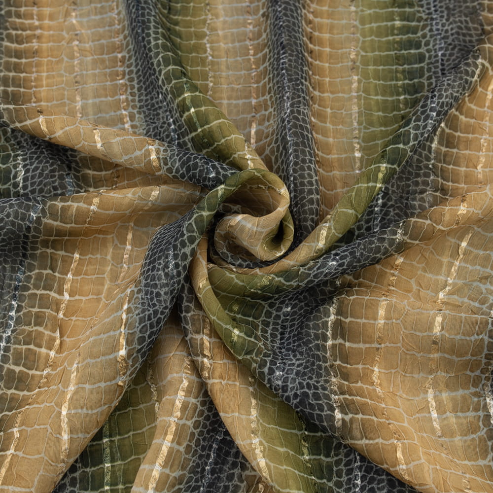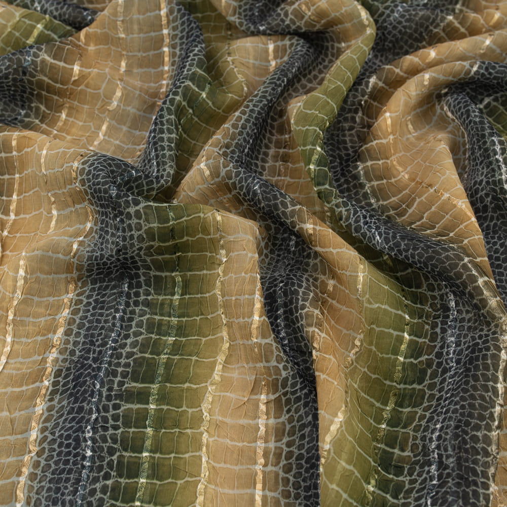 Tkanina szyfon wzór skóra krokodyla kolor beżowo oliwkowy